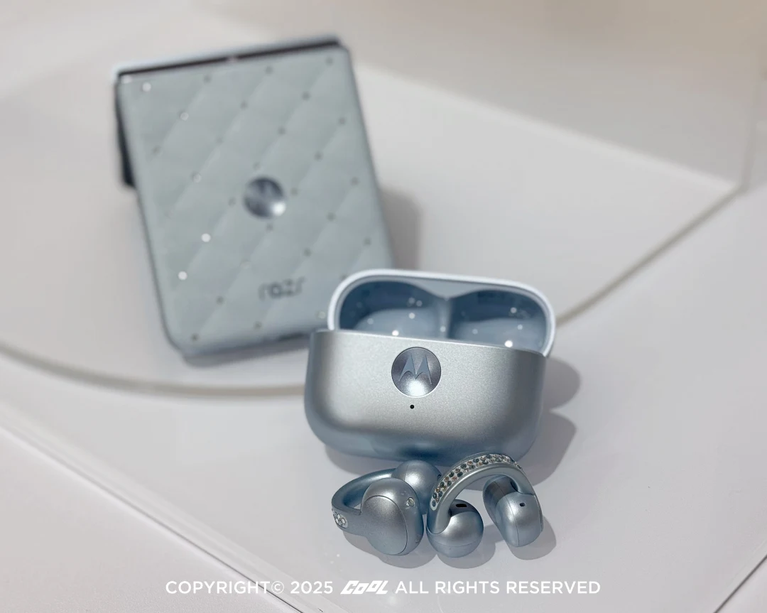 同系列還有同樣鑲有施華洛世奇水晶的 moto buds LOOP 開放式無線藍牙夾耳式耳機,耳機背殼顏色選用 PANTONE 標準色「PANTONE Ice Melt」,搭載 Bose 專業調音、12mm 無鐵驅動單體與 CrystalTalk™ AI 背景降噪技術,呈現清澈清晰地沉浸音場。