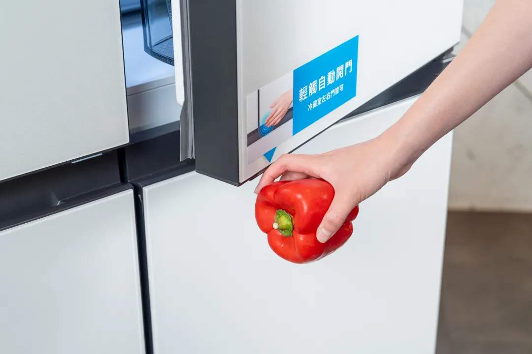 只需輕觸即可輕鬆開啟冰箱,即使雙手拿滿東西,也能輕鬆存取食材。圖片來源:台灣三星