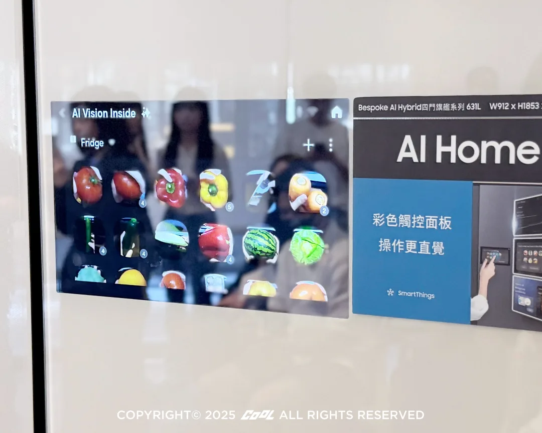 內建智慧攝影機搭配 AI 演算法,能辨識多達 37 種新鮮食材與 50 種加工食品,並同步更新至 SmartThings 應用程式。更具到期提醒功能,幫助用戶輕鬆管理食材庫存。