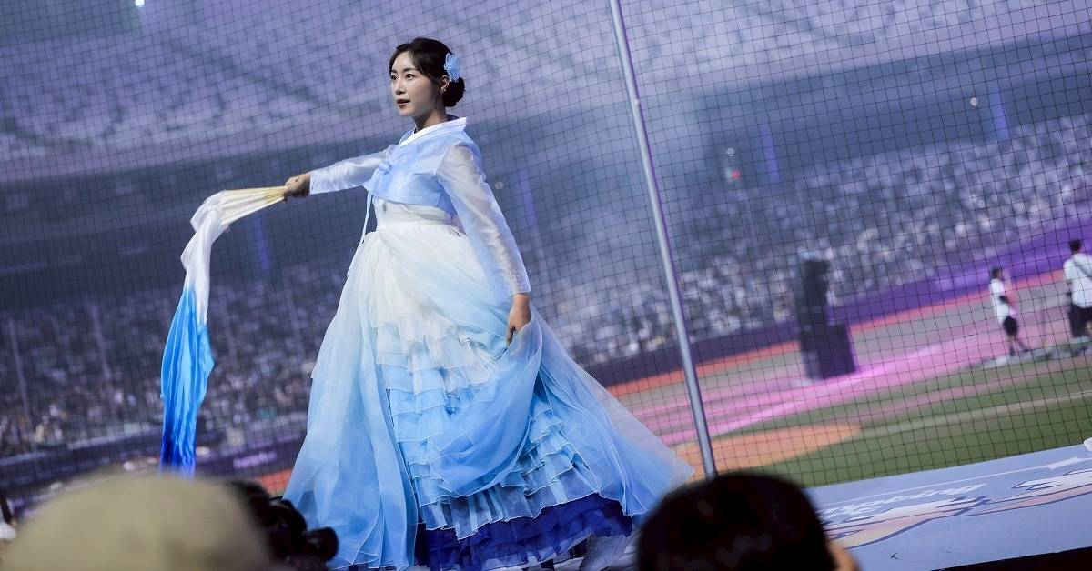 台鋼雄鷹大巨蛋 9/26 以「心動時刻」為主題一連 3 天舉辦主場賽事,王牌台柱女神「安芝儇」以一身古典韓服登台表演「扇子舞」,這一身改良式韓服以薄紗、蓬裙元素創新設計,紫羅蘭漸層色系夢幻浪漫,隨著「小安」揮舞扇子,裙襬也同步仙氣飄逸,柔美身段令網友驚嘆:「面紗摘掉的那瞬間,真的就像韓劇女主角一樣!超美的🥹每個表情每個動作都讓人驚艷🥹」。