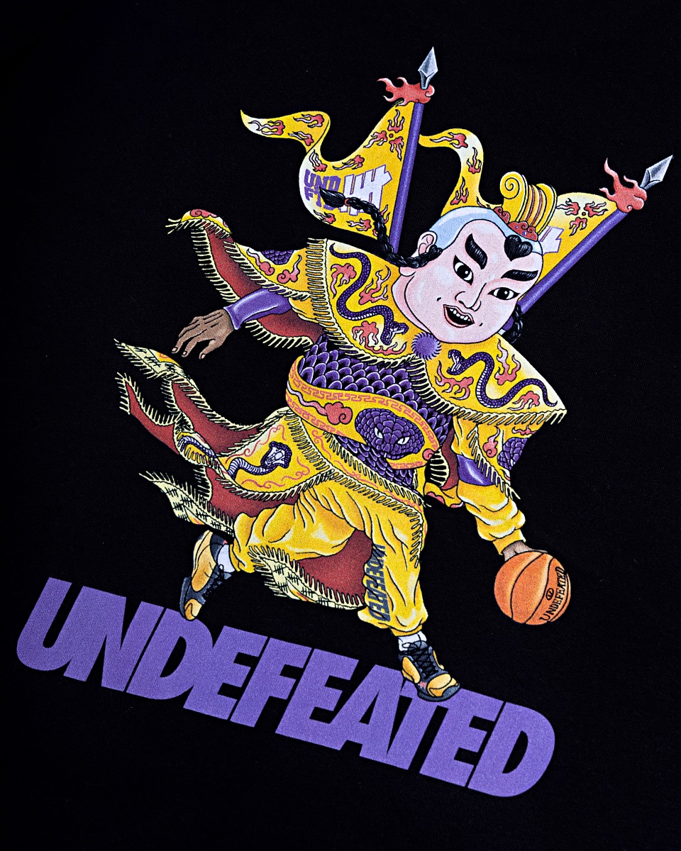 為慶祝UNDEFEATED TAIWAN開業一週年,UNDEFEATED攜手台籍旅日藝術家 sdanley_design_works 推出融合台灣傳統文化與現代運動精神的限量紀念系列。設計靈感來自台灣最具代表性的民俗神將——電音三太子,並結合籃球場上標誌性的突破動作,呈現出信仰與競技交會的獨特美學衝擊。