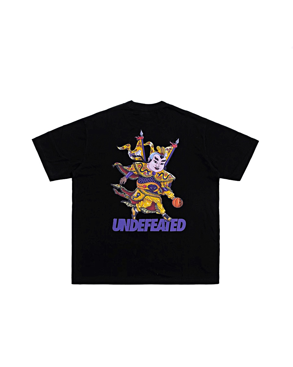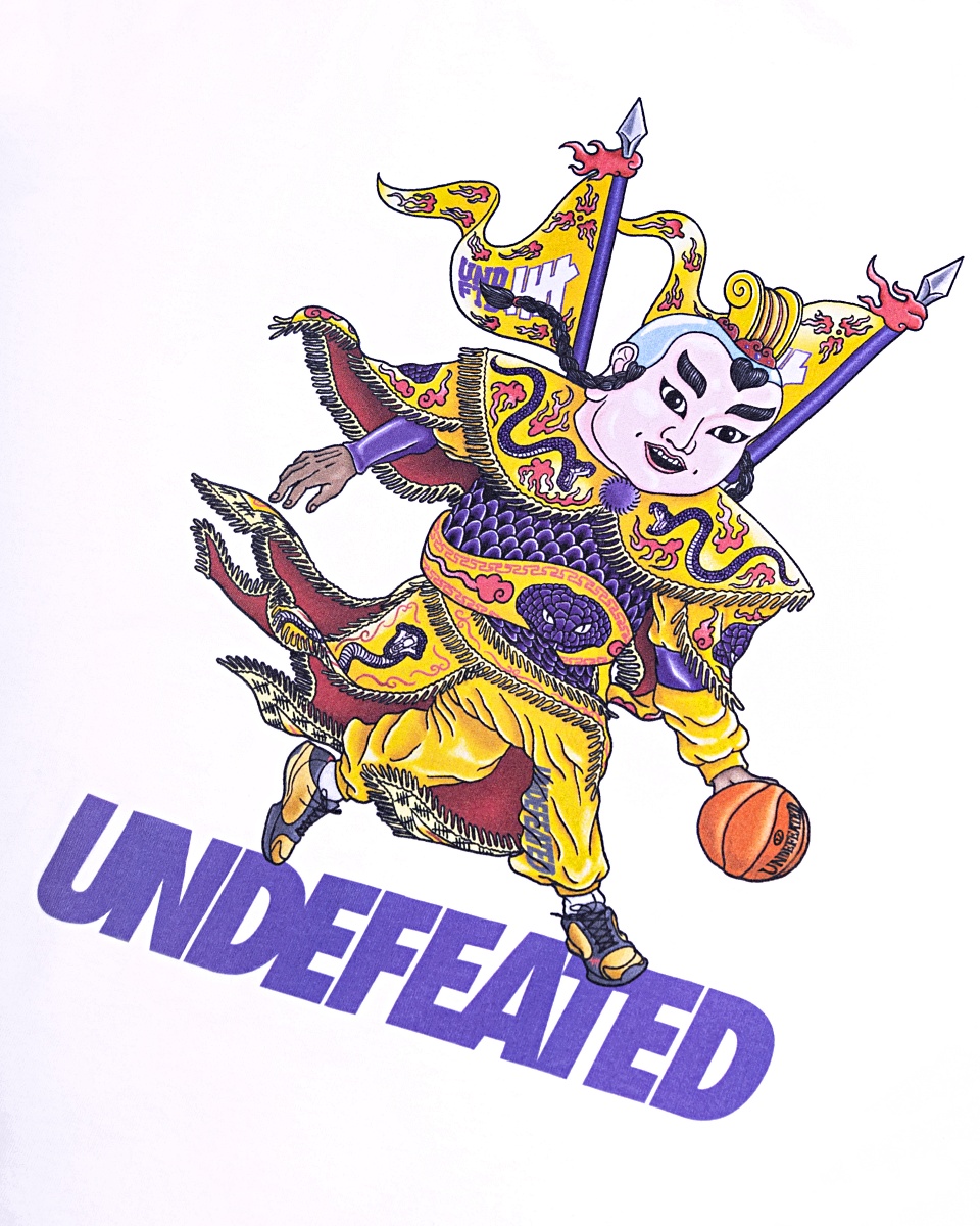 整體設計以尊貴的紫金配色為主軸,結合威嚴神將造型與 UNDEFEATED 經典五條槓旗幟,象徵品牌核心精神:不是執著於輸贏,而是拚盡全力的態度
