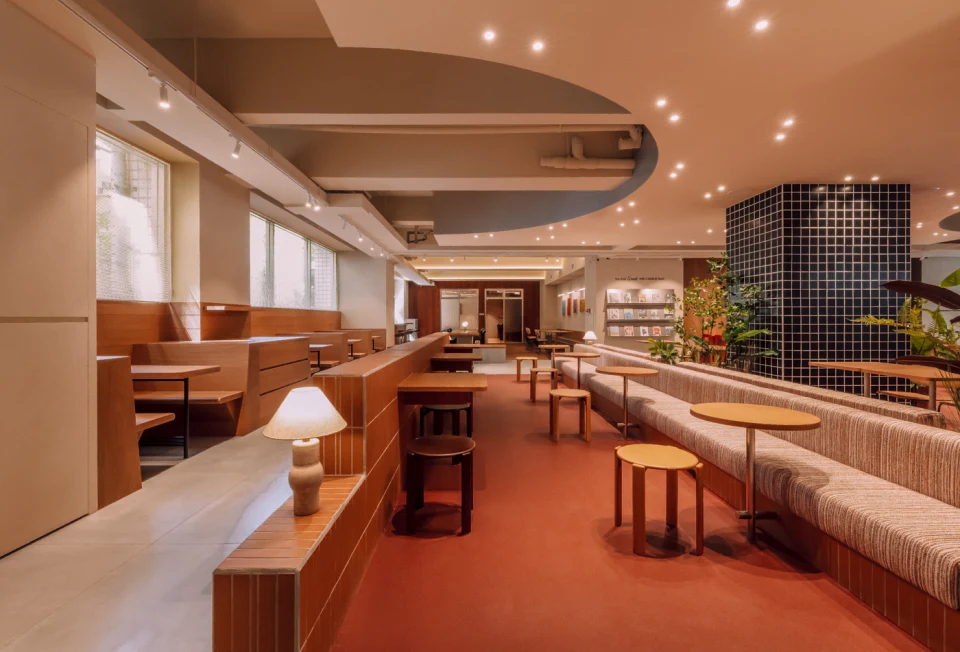 吧台與磁磚運用水磨石等材質,象徵「經典 × 創新」的融合,整體氛圍簡約又不失層次,完美體現現代都市人的「理想第三空間」。