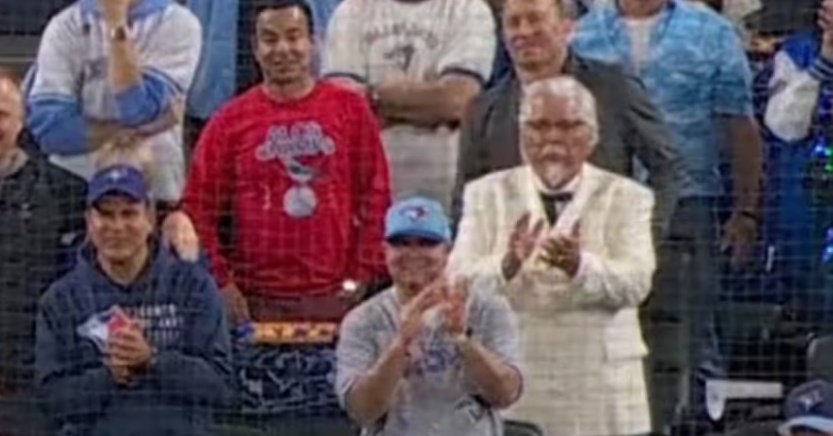 No buff dudes but apparently Colonel Sanders is sitting behind home plate tonight. #BlueJays #WorldSeries pic.twitter.com/BHkqrzsAZG