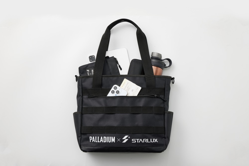 PALLADIUM×STARLUX星宇航空跨界聯名,將城市生活與旅途冒險完美融合於包款與戶外露營套組中雙品牌聯名系列延續PALLADIUM以探索為核心的軍事工藝語彙,融合星宇航空對飛行精準與質感的堅持,打造出兼具功能性與美感的黑色機能美學。包款設計從旅途與通勤需求出發,側背小包輕巧好攜,可靈活作為收納袋使用並與托特包組合;托特包則具肩背與手提雙用設計,底部網布細節能有效防止髒污;後背包除了穩定胸帶與行李固定帶外,亦設有可容納15吋筆電的獨立夾層,可與前開式行李箱搭配使用,滿足現代旅人的多場景切換。
