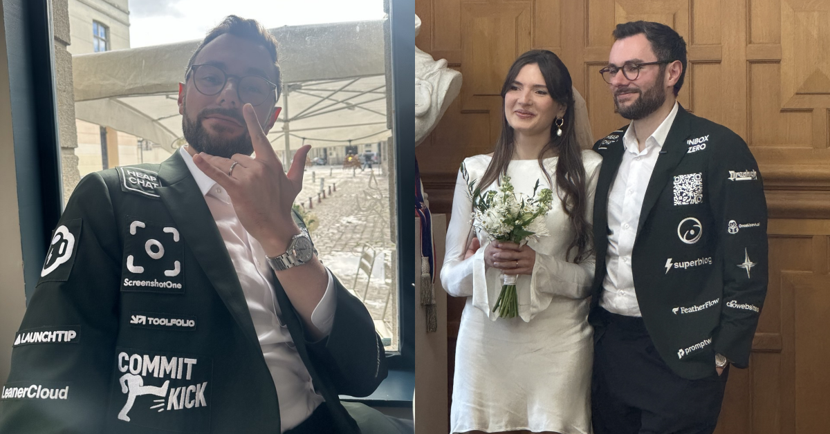 後來,Renouf 也表示自己的婚禮進行的相當順利,這次的企劃一共有 26 家新創公司在他的西裝上打廣告。