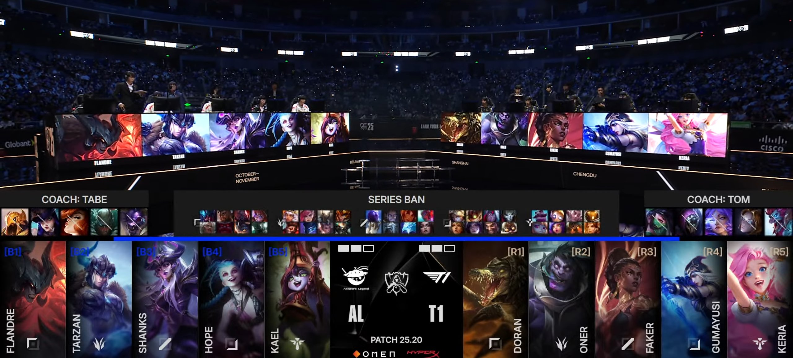 至於 T1 則玩得更花,除了 Doran 的雷尼克頓為本次世界賽常見的角色以外,由於「無懼選角/全局 BP」制度關係,Oner 拿出了蒙多醫生、Faker 梅爾、Gumayusi 艾希、Keria 瑟菈紛,再次重現了 T1 的馬戲團陣容。
