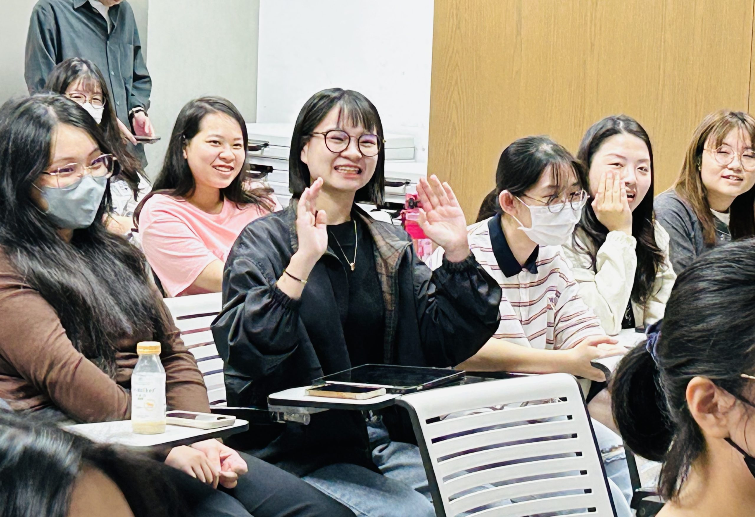 JINS Taiwan總經理邱明琪分享10年來如何讓人記住 JINS 品牌,以及不斷堆高品牌好感度的行銷策略。中山醫學大學匯集視光系、健康產業科技管理學系及外語系同學前來,並在會後提出眼鏡採購策略、疫情間的營業策略等問題與邱總經理對談;亞洲大學適逢期中考週,仍有近百位同學前來吸取職場經驗,為未來的職涯提前作準備。