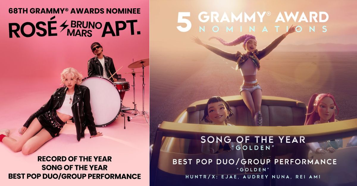 K-pop 潮流席捲葛萊美?〈APT.〉、〈Golden〉雙雙入圍年度歌曲大獎!