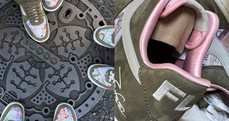 根據 FUTURADOSMIL 曝光的設計細節,這款 Air Force 1「FLOM『For Love or Money』」採用各式各樣的貨幣印花為主要設計視覺,並在拼接處搭配充滿細緻感的磨砂皮革;內裏延伸至鞋幫處則使用粉色緞面材質,並與鞋帶上七彩潑墨相互呼應,最後於後跟處以限量編號「70 LXX」完成收尾,整體意義非凡。