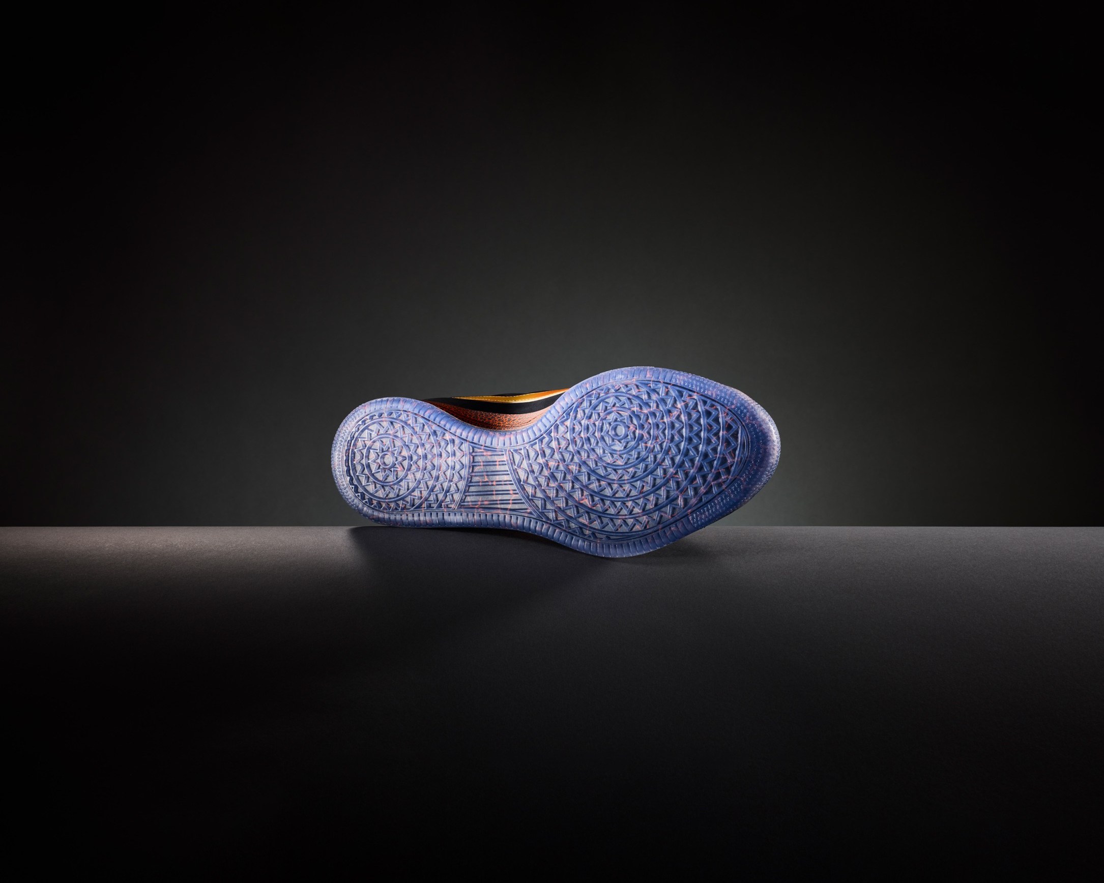 憑藉對比賽的深刻理解與對設計細節的高度敏銳度,Devin Booker 從多款Nike 經典鞋款中汲取靈感。鞋款外底延續 Nike Air Force 1的耐用性能,加入日光斑點人字形抓地紋路,向鳳凰城致敬的同時,更能幫助球員快速移動和靈活變向。鞋身細節融入仙人掌元素與Devin Booker 手繪圖案,外側穩定結構進一步打造更寬的支撐基底,增加橫向移動時的穩定性。
