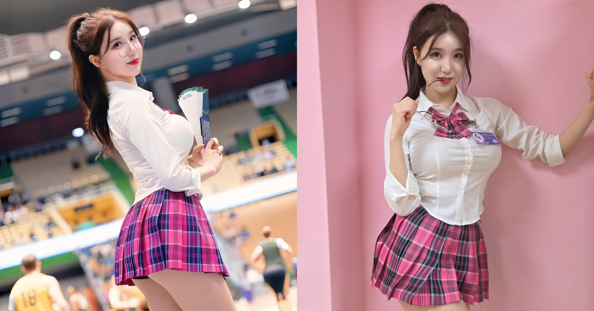 一向給人性感豔麗形象的啦啦隊女神「金賢姈」近日一改常態,變身為青春無敵的女高中生,她以俏麗高馬尾搭配白色制服、粉色格紋百褶裙,展現青春活力,女神嘴咬鏡框簡直超犯規,又純又欲的氣息令人著迷!上場應援時「金賢姈」側身回眸辣露性感蜜大腿,清純與性感兼具的扮相,令網友們大讚:「請做我學姐」、「學生時代肯定是女神」、「這體態顏質好像動漫人物」、「呼吸困難!」、「芭比好漂亮」…。