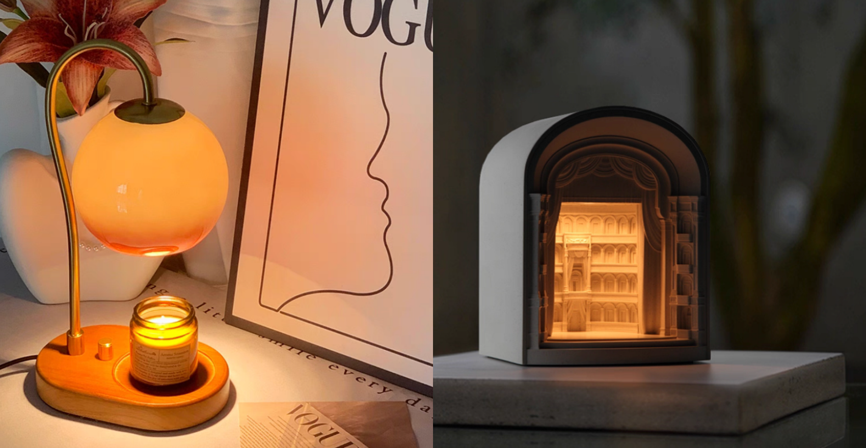 搞定了舒服的沙發和氛圍燈,視覺和觸覺都滿分了,但別忘了嗅覺也是放鬆的關鍵呀!挑選一款你最喜歡的香氛蠟燭,再準備一盞超有儀式感的香薰融蠟燈!淘寶上有多款造型可以挑選,還有宛若一座迷你劇院般的款式,光線從立體雕刻中透出,簡直就是一件藝術品呀,讓它在角落溫柔發光,悄悄散發出最療癒的香氣,搭配柔和的光影,保證你一回家就全身心放鬆!