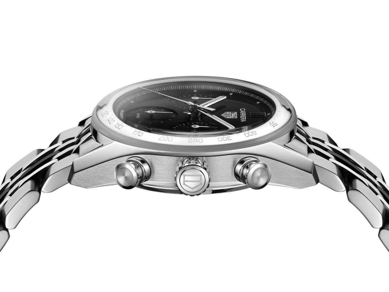 TAG Heuer 與 fragment 延續自 2018 年開始的跨界對話,再度推出全新 Carrera Chronograph x fragment 聯名限量版。這一回藤原浩以他標誌性的極簡黑白語彙,結合 Carrera 的經典賽道基因,把 Glassbox 拱形藍寶石水晶鏡面玩出全新線條語言,呈現一種乾淨俐落、卻帶著強烈前衛氣場的 fragment 潮流風格。