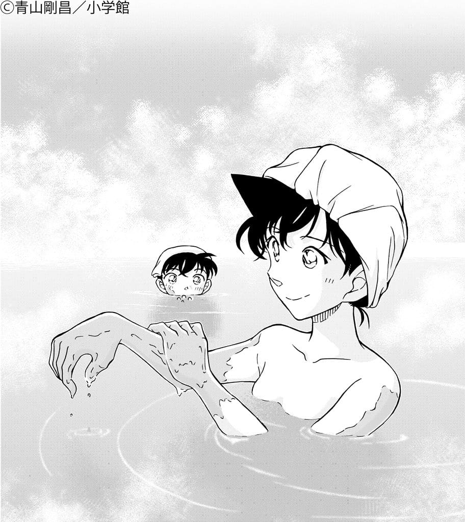 就在雜誌發售前一天,《葬送的芙莉蓮》官方突然在 X 上投下震撼彈:「本日發售的《名偵探柯南》中,出現了鏡蓮華的戒指。」並附上小蘭和柯南在泥溫泉裡的漫畫畫面,瞬間引爆社群熱度。