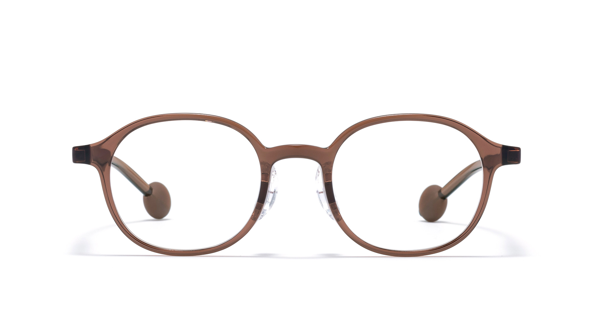 替孩子打造一種成熟卻不老氣的俐落氣場!放大的圓形輪廓能讓眼神更集中有精神,特別適合額頭偏寬、臉型偏長或喜歡有存在感造型的小朋友,戴上後視覺重心自然往上提,看起來更清爽、更精神奕奕。深棕琥珀散發穩重氣息,茶透明色則帶有溫柔的文青感,而霧灰透明更像是銀河系小潮童必備色,怎麼穿都好搭~