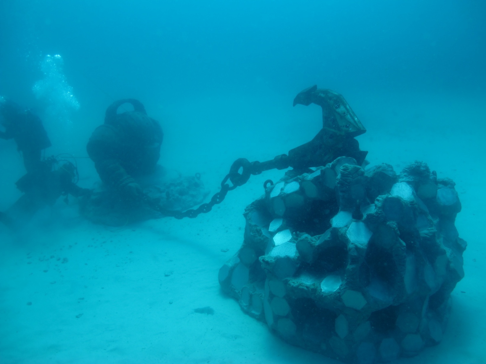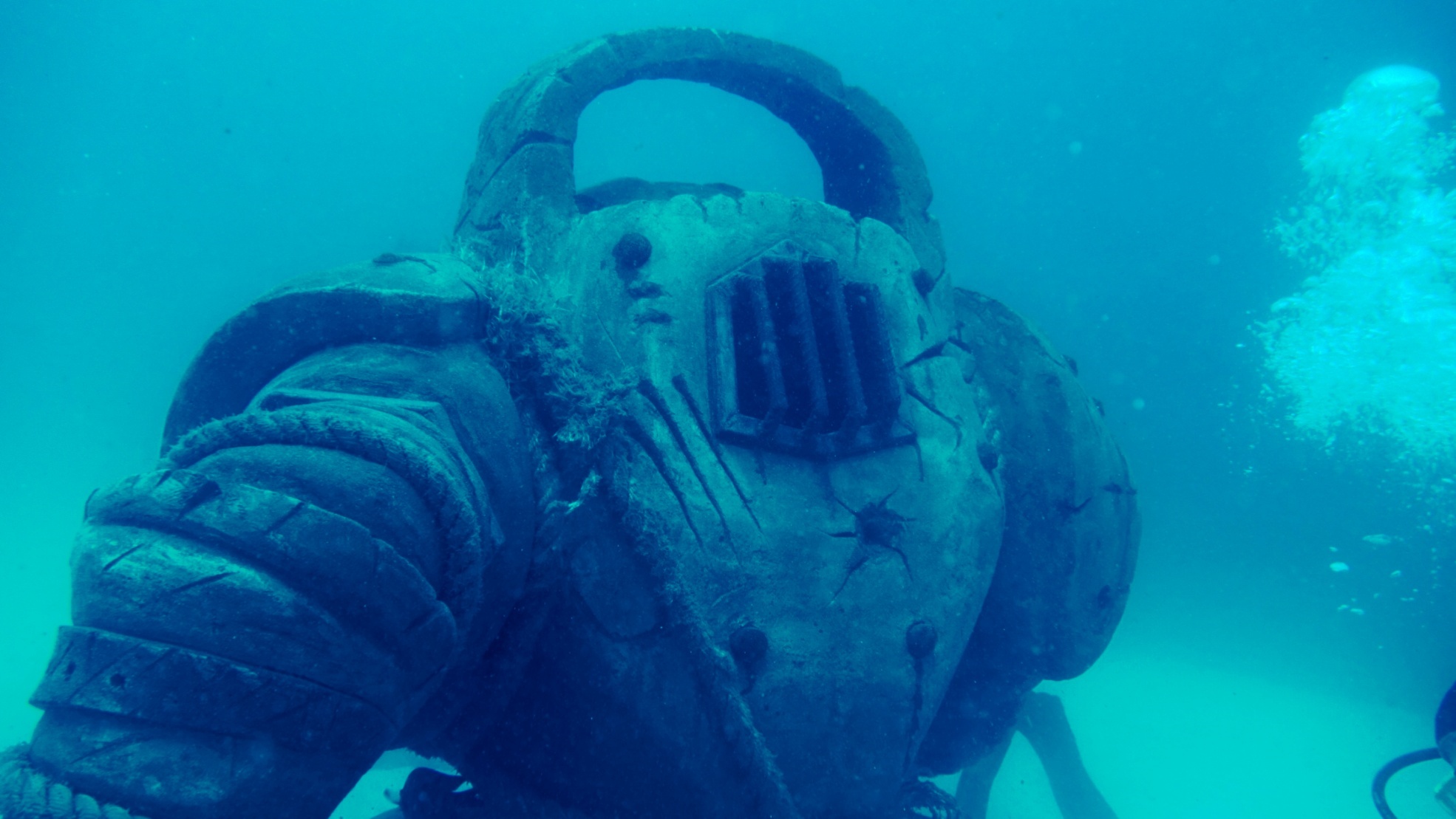 URGQ 提供的照片可以看見,在海底沉睡十年的納帝魯斯確實留下了歲月痕跡,但依然屹立不倒。雕像表面佈滿了藤壺,部分身軀被沙層掩埋,然而他仍忠於自己的使命,成為當地海洋生物的棲息之所。裂唇魚(又名清潔魚)在他的錨周圍穿梭,巨大的石斑魚在附近巡弋,無數小型魚類則在他鎧甲的縫隙間進進出出。