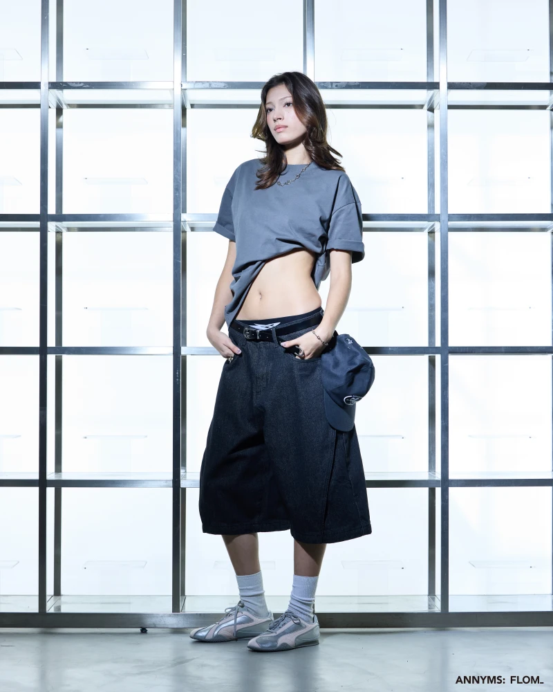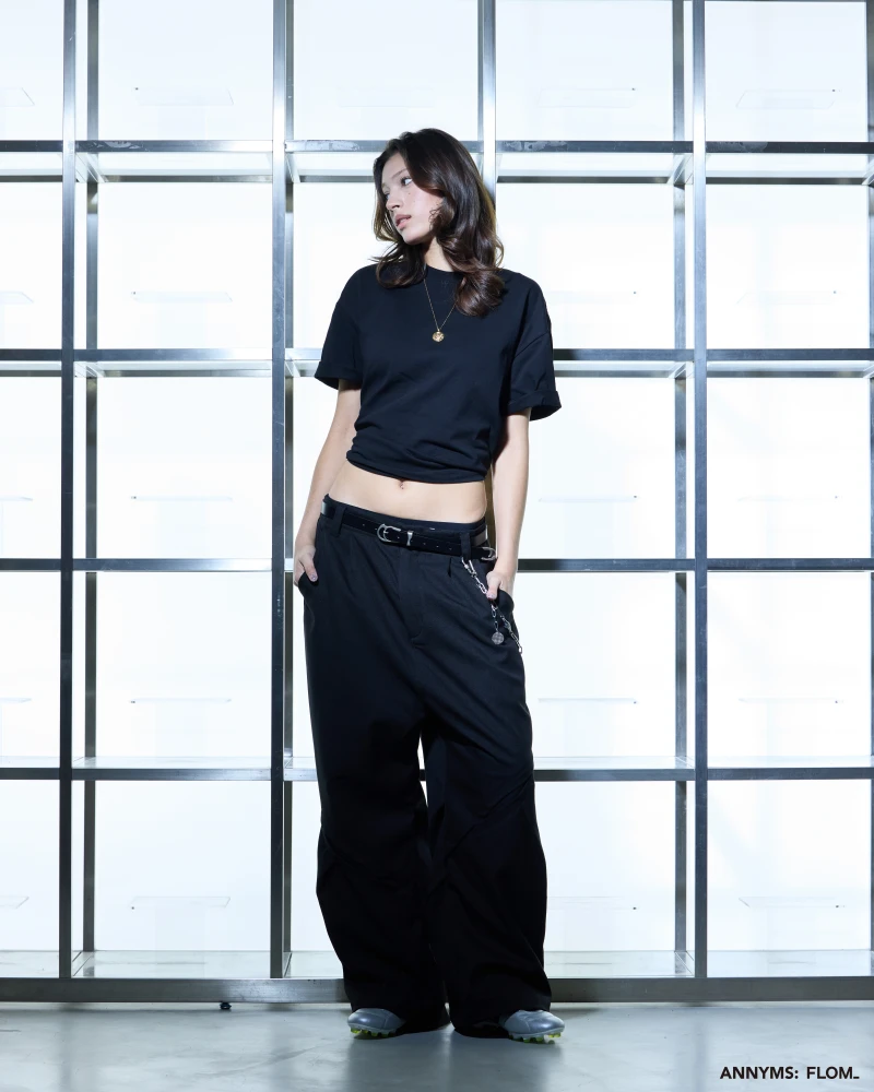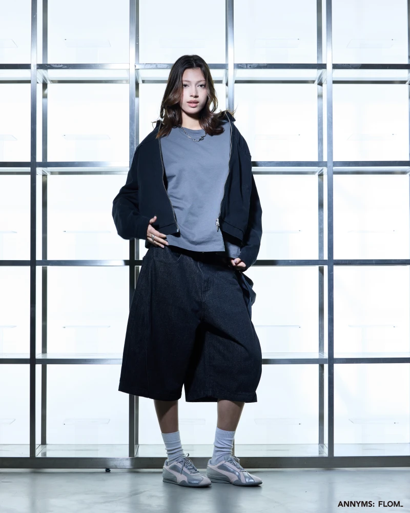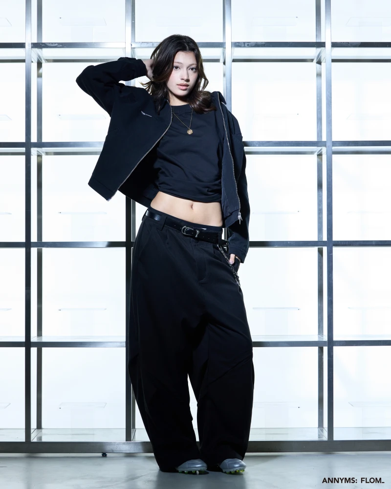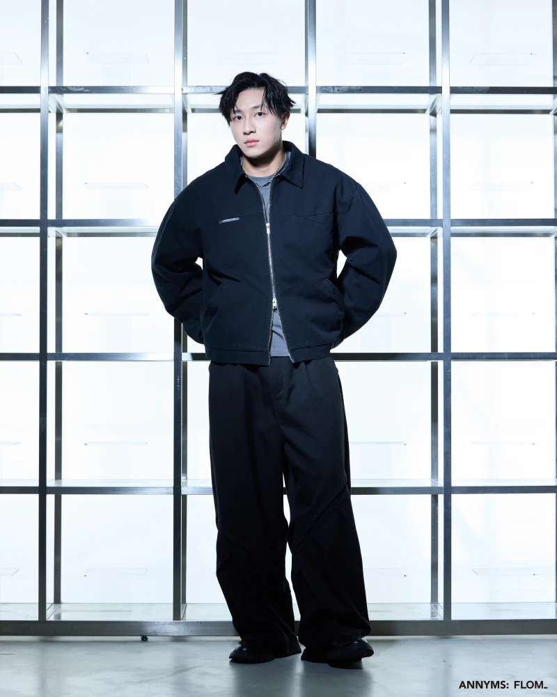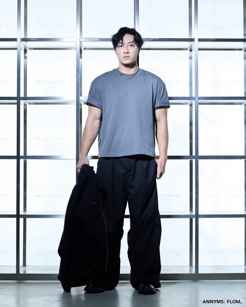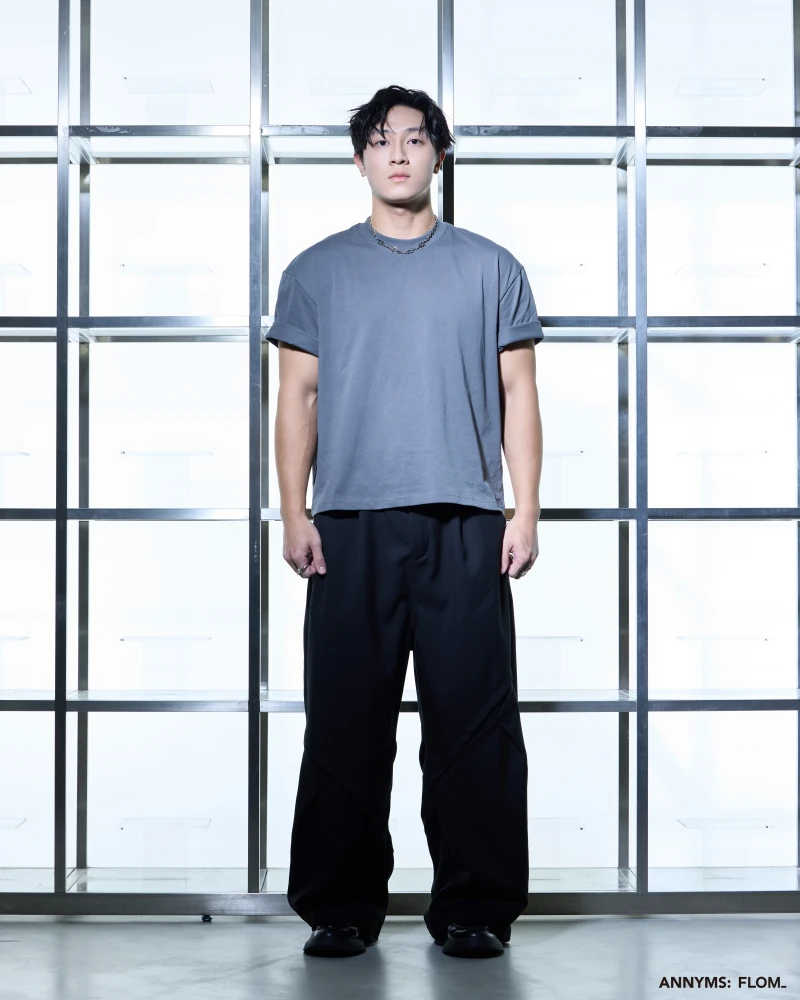 本次聯名共推出短 T、七分短褲、西裝長褲與工裝外套四款單品,整體以 ANNYMS: 標誌性的黑灰色調貫穿,搭配俐落剪裁,展現品牌一貫的版型語彙。FLOM_ 則在其中注入更貼近日常的穿搭輪廓,讓單品能在街頭與生活場景間自由切換,細節處可見雙方合作的灰階 Logo 小標,低調卻耐看。