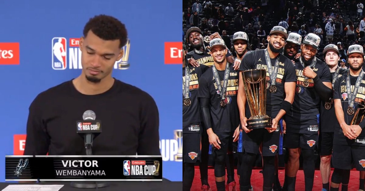 因為遭到逆轉而丟失原本到手的季中盃冠軍,賽後 Victor Wembanyama 的發揮也受到矚目,甚至還有雷霆記者立即發文狠酸,遭到網友批評。沒想到的是,Victor Wembanyama 在賽後受訪時突然泛淚哽咽,向記者們道歉表示:「對不起,我今天失去了一位家人。」在簡單回應兩個題目後,就感傷離場。