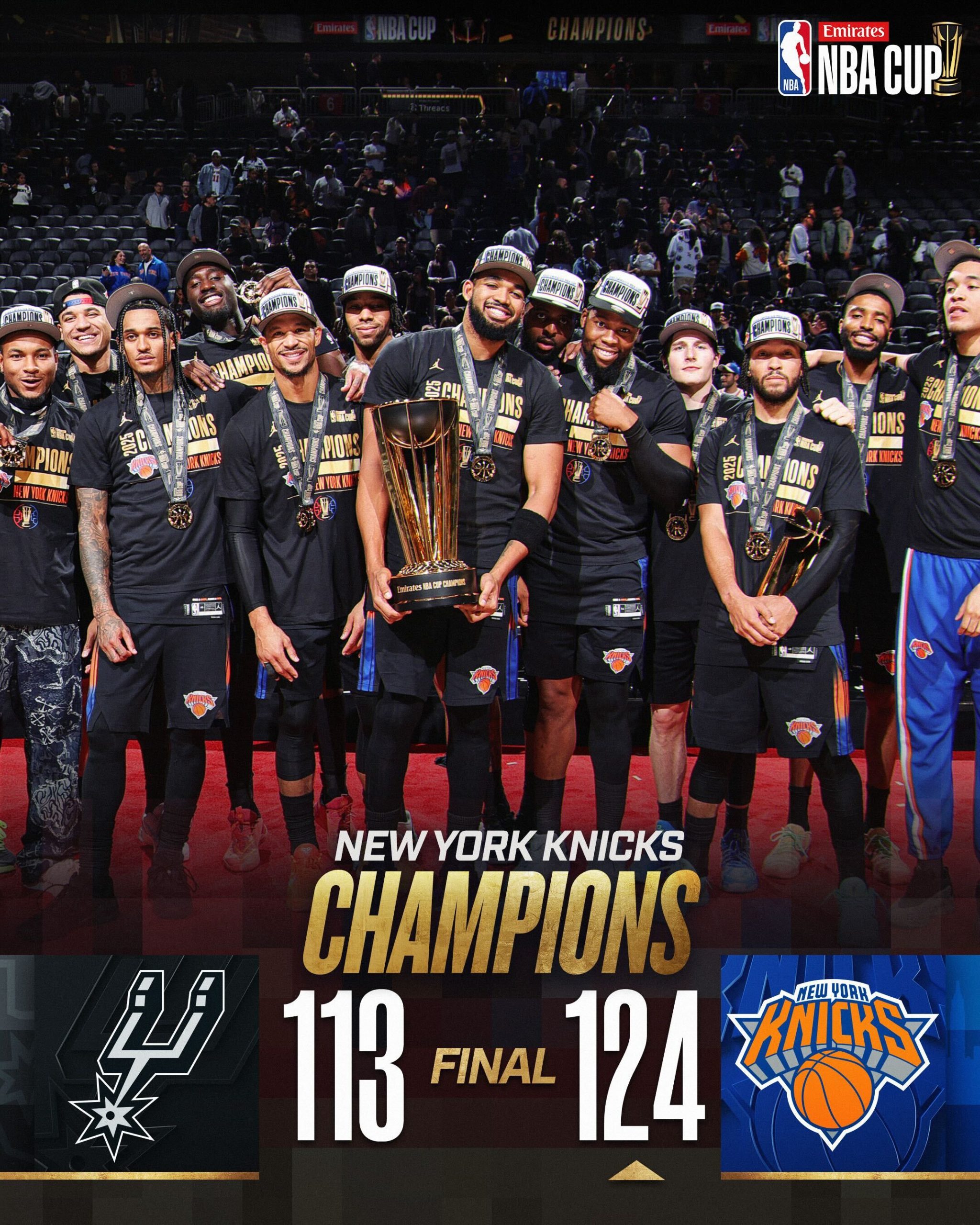 尼克隊在此次盃賽展現出強大的防守深度,全隊 7 人得分上雙,徹底執行教練 Mike Brown 的體系,不僅拿到了 50 萬美元的個人獎金,更向全聯盟宣告,這支尼克隊已具備衝擊總決賽的韌性。