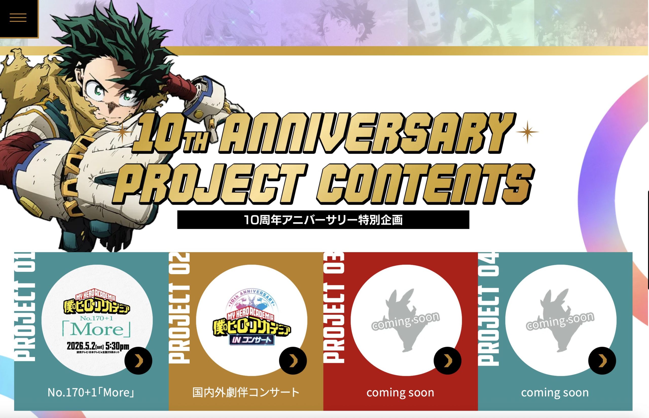 由堀越耕平創作的英雄題材漫畫《我的英雄學院》動畫已於 12 月 13 日正式完結,而在 20、21 日的 JUMP FESTA 2026 活動當中,官方將陸續公開作品十週年的全新紀念計畫,目前已公開全新「More」篇章動畫化以及全新演唱會的消息!