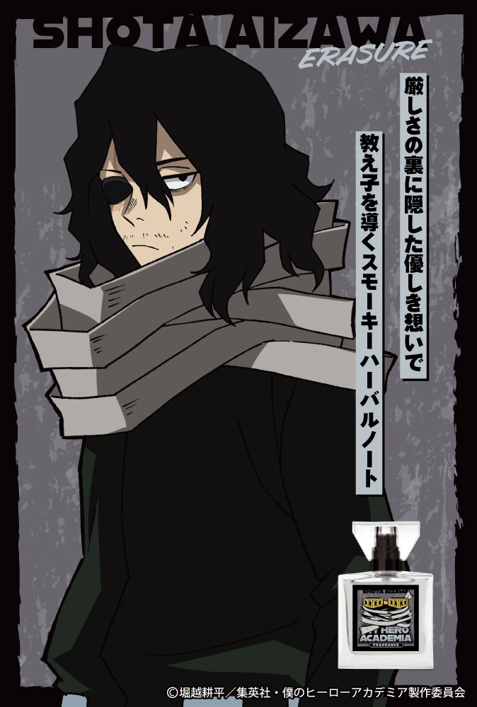 相澤老師的香氣是茶樹的辛辣氣息悄悄融入,營造出略帶慵懶的氛圍。若被相澤老師那雙攝人心魄的眼睛所吸引,瞬間便會感到無力招架,無處可逃。悄悄蔓延的辛香玫瑰,卻傳遞出理性背後那份堅定不移的信念。噴上這款香水後,不知不覺間,辛辣的氣息消散,取而代之的是麝香的甜美,如同對學生的溫柔呵護,舒適地縈繞在心頭。 這是一款默默守護著年輕人成長的香水!