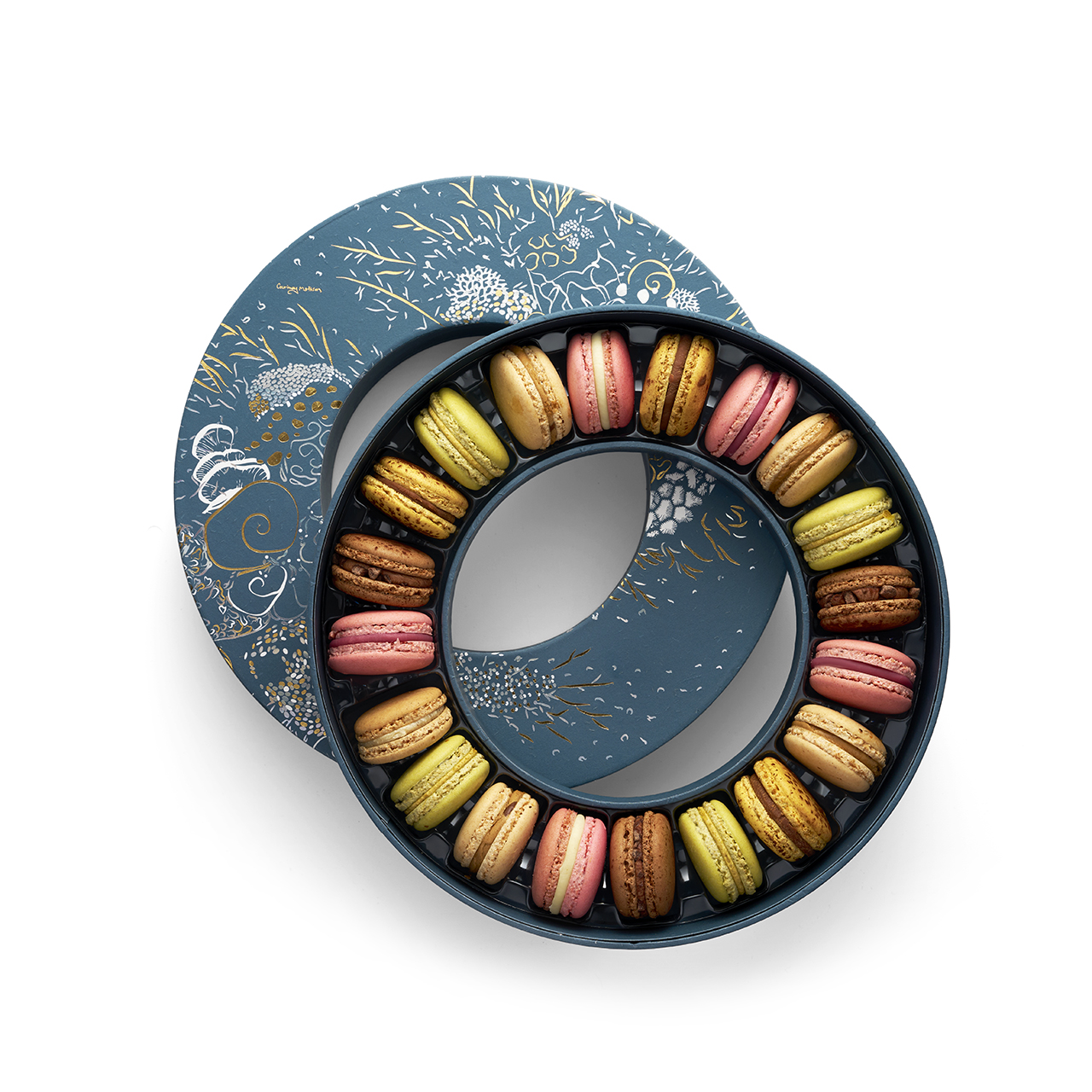 享譽全球的法國頂級糕點品牌,以精緻馬卡龍與創新甜點聞名。創始人PIERRE HERMÉ被譽為「甜點界的畢卡索」,以巧妙融合口感與風味的藝術手法享譽盛名。蔚藍秘境馬卡龍禮盒融合海洋意象與繽紛風味,每一顆都是對自然生息的優雅詮釋。20入建議售價3,180元,冷藏保存7天。