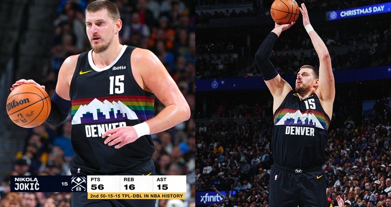 丹佛金塊當家中鋒 Nikola Jokic 在聖誕夜再度締造歷史。Jokic全場狂轟 56分、16籃板、15助攻 的超級大三元,並在延長賽獨拿 18分 創下NBA新紀錄,率領金塊以 142:138 擊敗明尼蘇達灰狼。