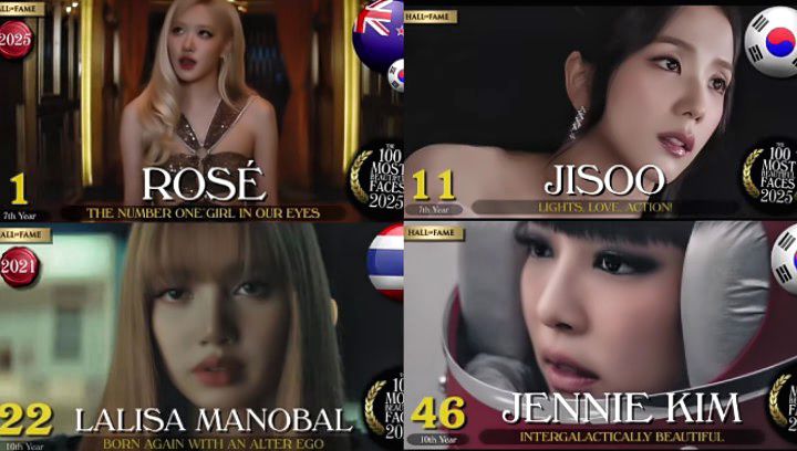 南韓頂流女團 BLACKPINK 再次強勢登榜,Jennie(金珍妮)位列第 26 名、Lisa 獲得第 22 名、Jisoo(金智秀)排行第 11 名、Rosé(朴彩英)一舉奪下冠軍。此外 IVE 門面擔當張員瑛排在第 26 名,aespa 隊長 Karina 前進至第 8 名,i-dle 中國籍成員宋雨琦佔據第 59 名、泰籍成員 Minnie 來到 33 名。