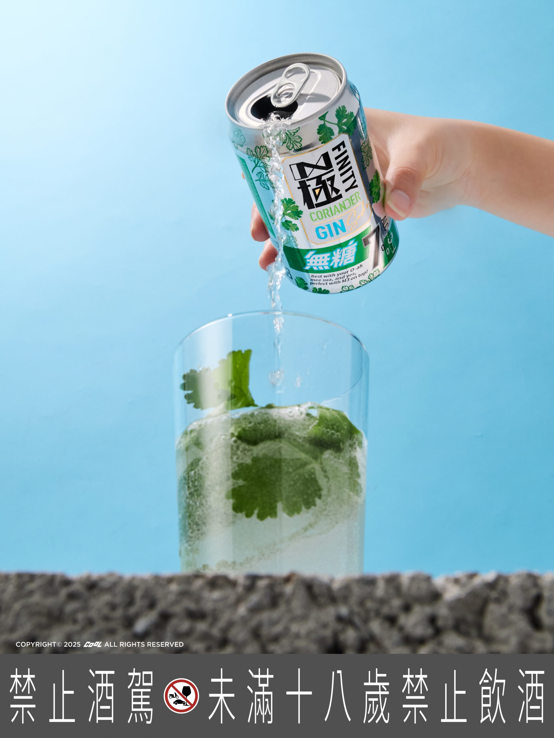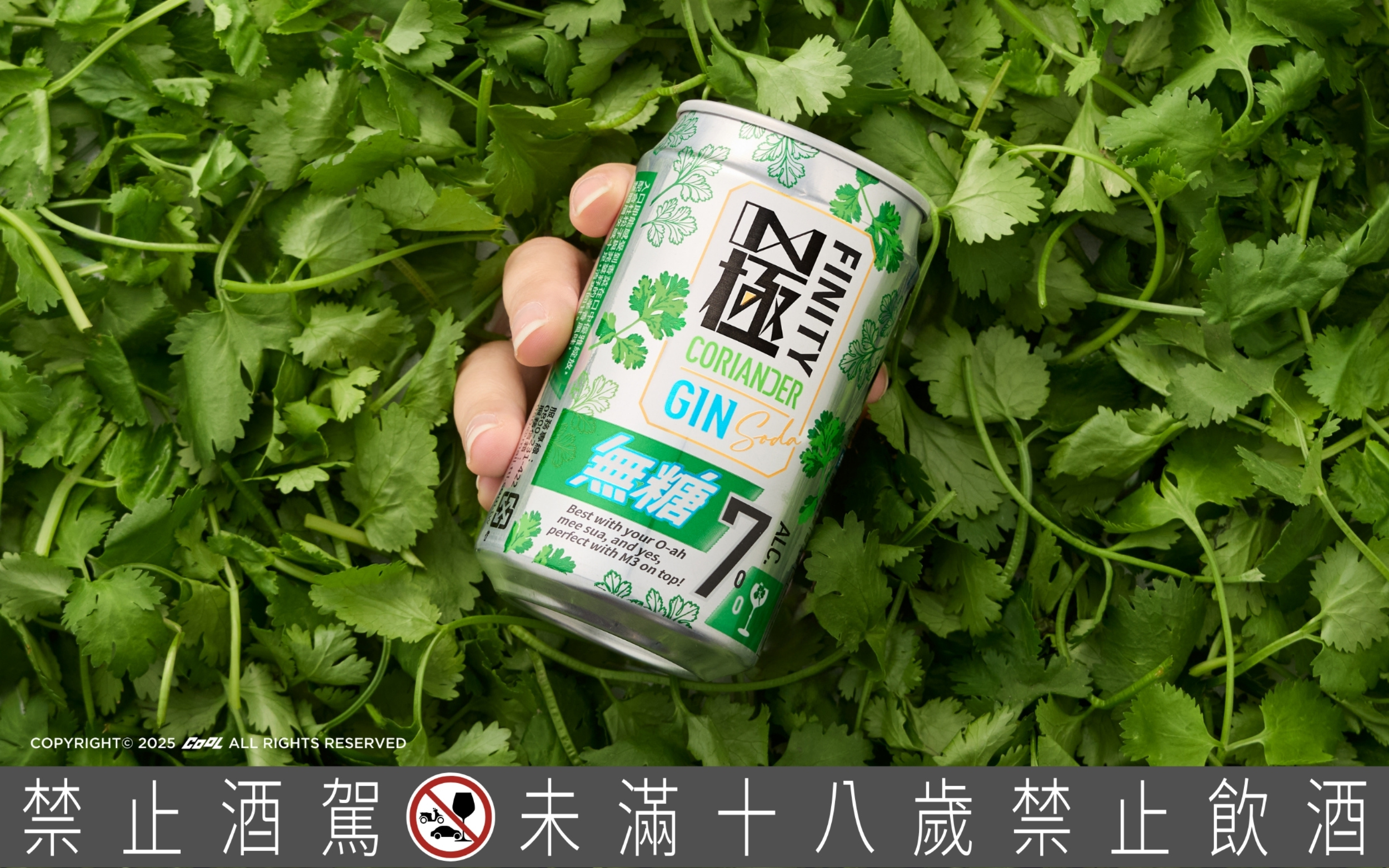 台啤「極FINITY-香菜琴調酒」除了以 7% 的高酒感成為你的社交利器,也用 GIN 的清爽基底搭上淡淡的台式香菜香氣,拼出台啤最拿手的在地創新風味、惡搞趣味。別被香菜的名字嚇到,它其實非常清香、無負擔,就像一杯帶 7% 酒感的氣泡水,沒有草味、沒有菜味,入口乾淨順口。