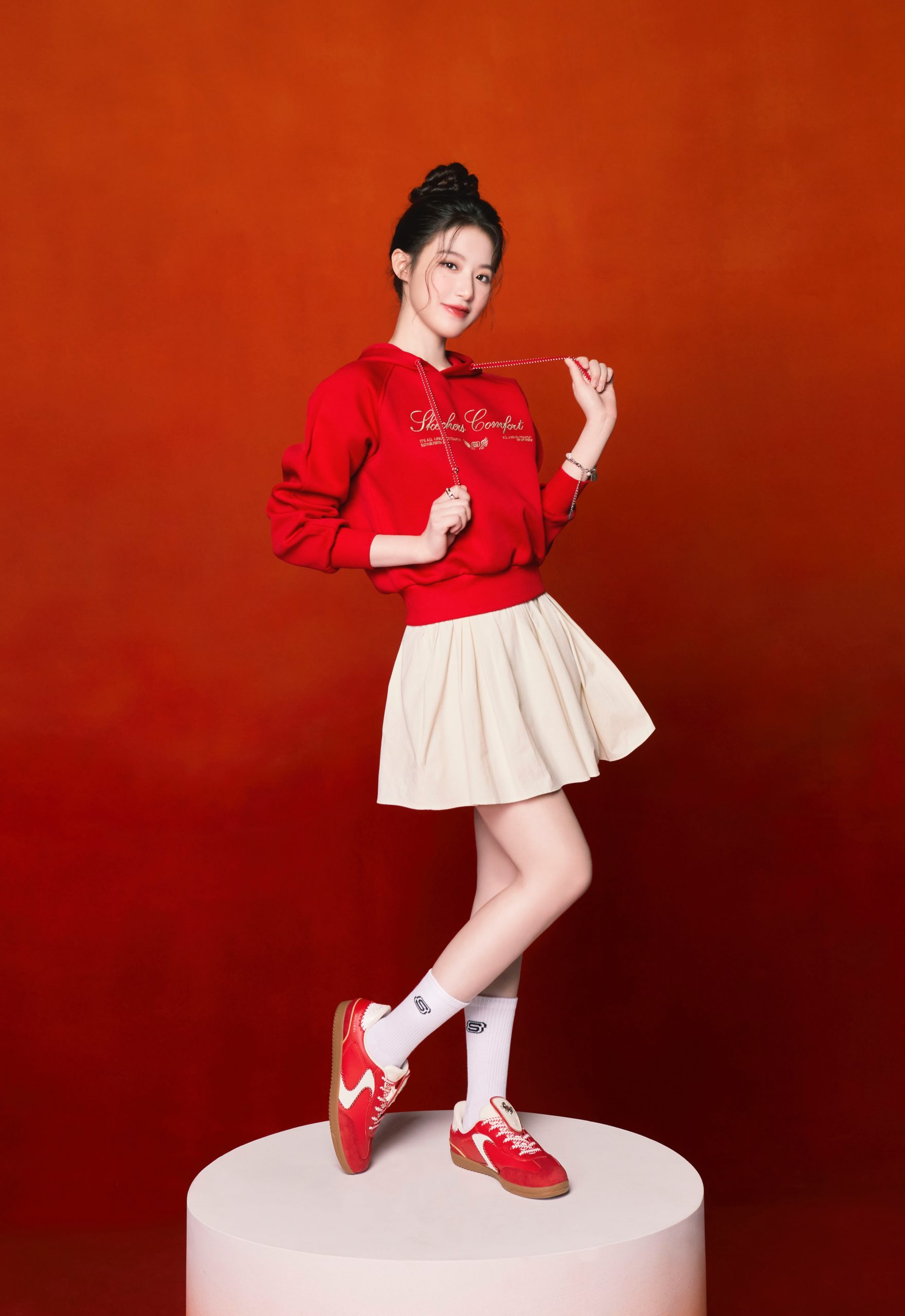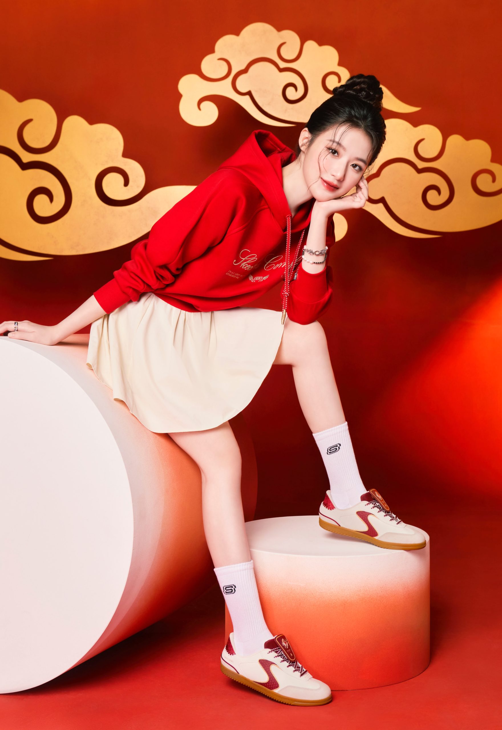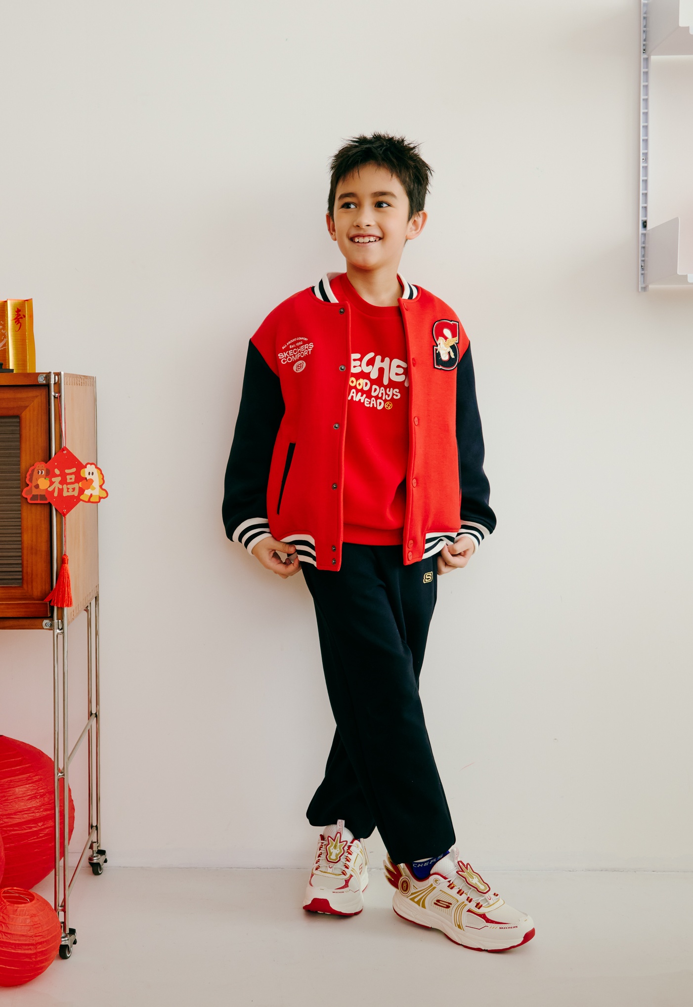 擁有超高人氣的代言人舒華,在 SKECHERS 2026 新年形象大片中,以年輕世代的率性視角與「不定義自我」的態度帥氣出鏡!舒華穿上SKECHERS經典德訓鞋 HOTSHOT 新年限定款,並將紅白撞色設計完美混搭馬年主題服飾,展現充滿能量且百變的自信姿態。HOTSHOT 新年系列特別在鞋帶處增添盾牌造型皮革裁片,將氣勢非凡的敦煌飛馬圖騰與品牌LOGO結合,象徵勇氣與力量並行。舒華最愛的 SLIP-INS 瞬穿舒適科技更為經典德訓鞋注入機能內蘊,延續「我的舒式主場」概念,傳達「不被定義、不只有一種樣子」的舒式精神,可以展現優雅、也可以適時強悍,在新的一年盡情展現自信的模樣。