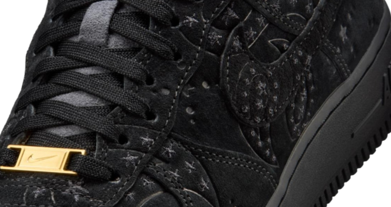 這次推出儘管是不同鞋型,但經典程度相當。可以看見此款 Air Force 1 Low 以黑色調示人,全鞋覆蓋地麂皮材質走出了低調奢華的路線,相同色調的變形蟲紋路,因由光影變化亦能使其體現出絕美的紋理層次,完全相輔相成。而為了加倍突顯出質感,後跟包片、鞋舌更以皮革包裹,並且在各個醒目地細節處配上金色,完美地融合高端與街頭的氛圍,絲毫不遜於聯名款式,造型上的運用亦更加靈活出色。