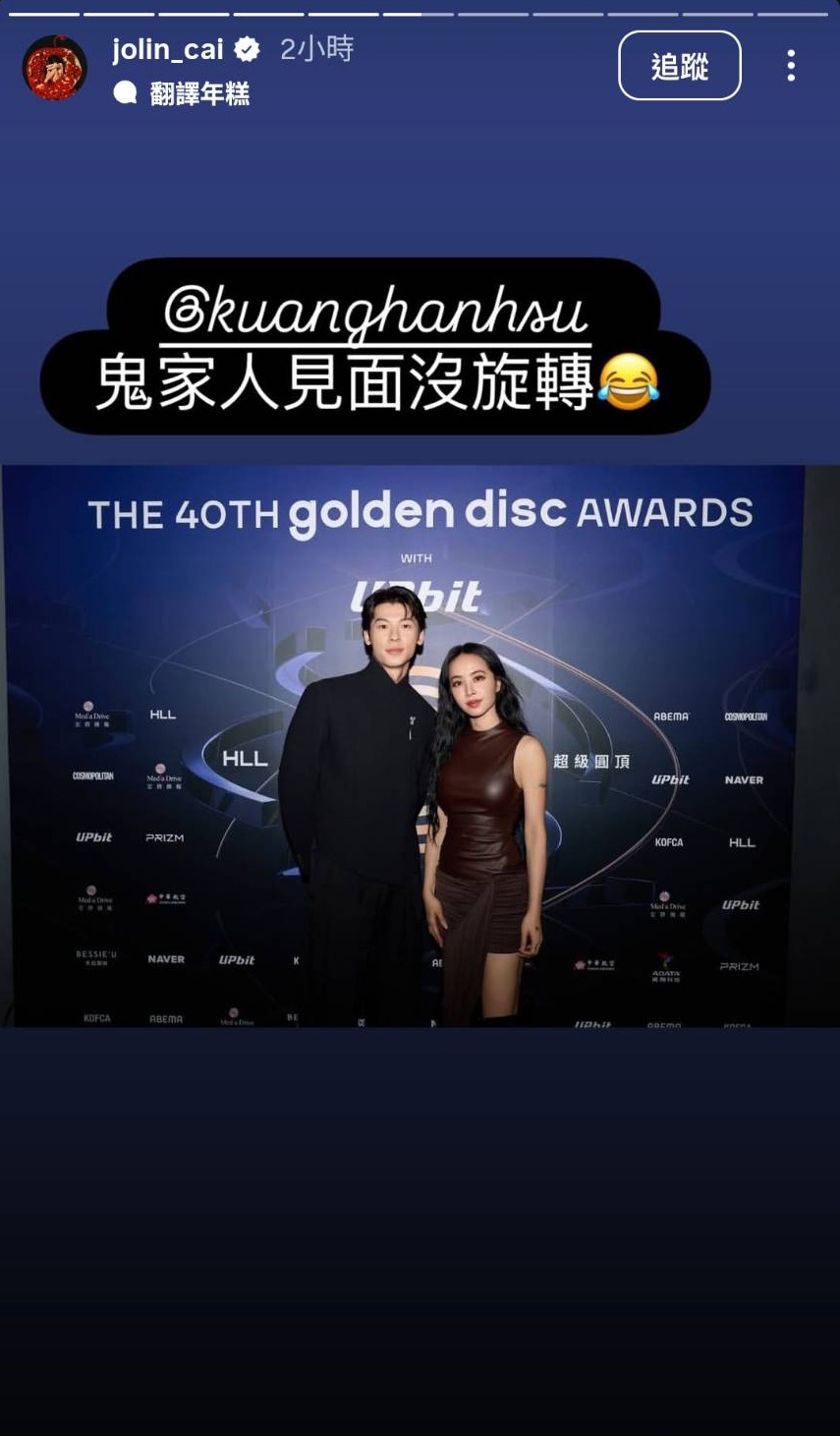 本屆金唱片頒獎典禮受邀頒獎的台灣明星還有「國民男神」許光漢,他除了不計形象獻出〈 OVERDRIVE 〉撒嬌舞之外,也接連與邊佑錫、蔡依林、LE SSERAFIM、ENHYPEN、CORTIS 成員趙雨凡以及安乾鎬…等韓星偶像們驚喜合體,再度引發台韓網友們高度關注。