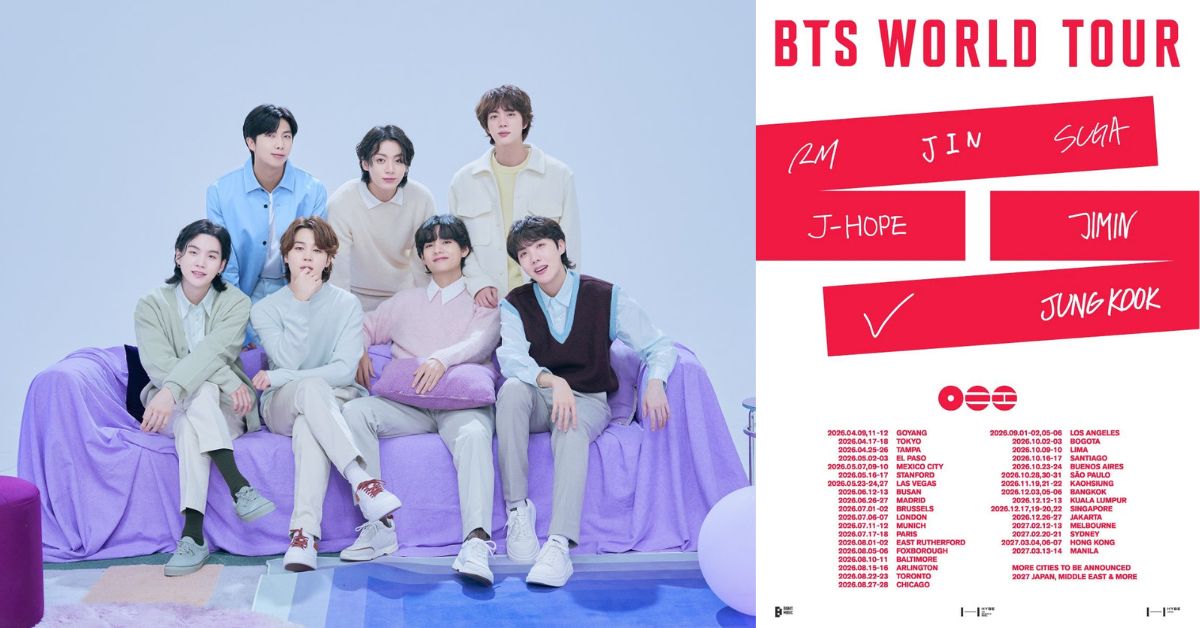 K-pop 頂流男團 BTS 在 2025 年 6 月全員退伍後確認了軍白期的結束,並在 2026 年不斷暗示將有新作品和巡演的展開。而在官網開設倒數行事曆後,BTS 官方終於在 14 日公布了全新世界巡迴演唱會 BTS World Tour 的資訊和場次資訊,預計將從 2026 年 4 月的南韓高陽一路到 2027 年三月的菲律賓馬尼拉,一共巡迴 34 個城市,可以說是相當大的規模!