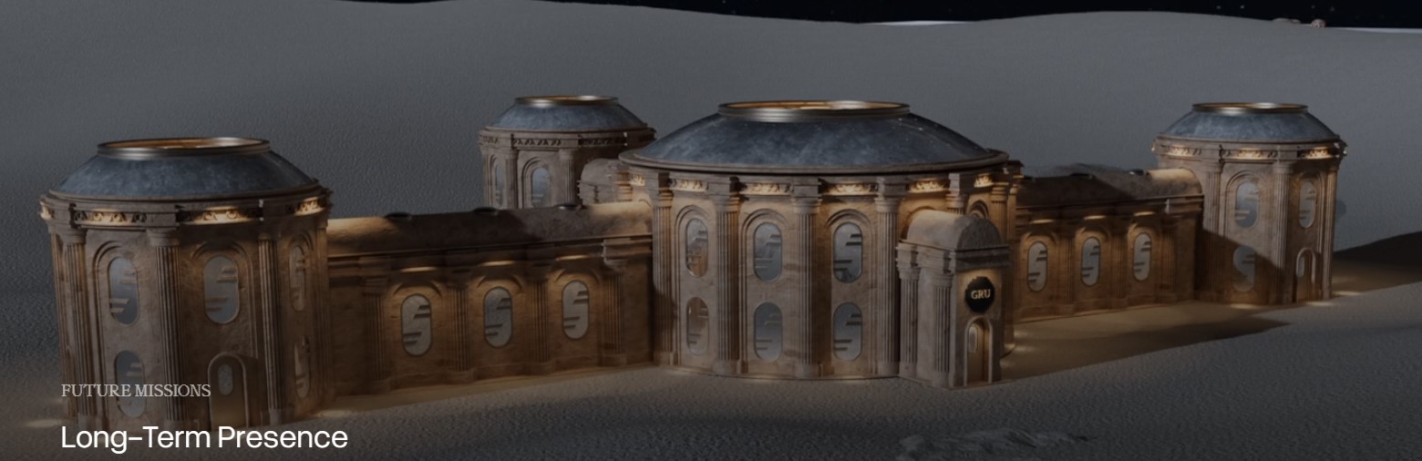 接著是 2027 年的「私人競標」,入選的申請者將收到邀請,對應特定任務角色與月球停留行程。再來是 2029 年的「首次月球任務」,GRU 的建設載荷登陸月球,並確認已準備好進入下一階段。