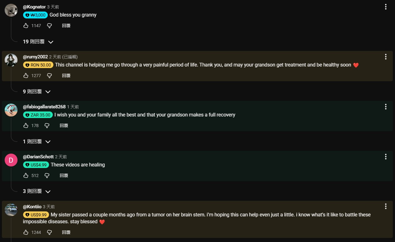 GrammaCrackers 最新的影片中,她體驗了《Minecraft》新的版本,而底下除了各種祝福的留言之外,也含有大量來自世界各地的「超級感謝」,你能看到各種幣值,全世界的玩家們都聚集在一起,形成了一股龐大且溫暖的力量。