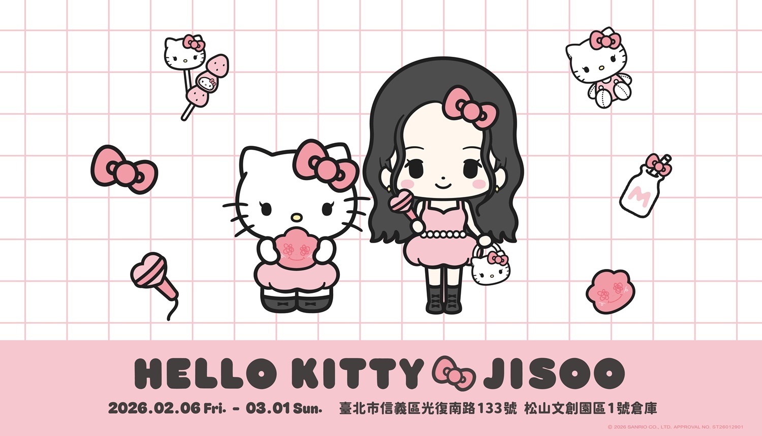 YG 娛樂女團 BLACKPINK 成員 JISOO 多次公開自己非常喜愛 Hello Kitty,而 2026 年她宣布將聯名 Hello Kitty 推出「HELLO KITTY & JISSO」企劃,在首爾公開企劃時便引起許多熱議。而這次的「HELLO KITTY & JISSO」也預計將舉行期間限定的聯名快閃店,台灣也預計會有展出,預計將於 2 月 6 日至 3 月 1 日在台北松山文創園區設立,對這次 JISOO 和 Hello Kitty 的聯名企劃有興趣的粉絲可千萬別錯過!