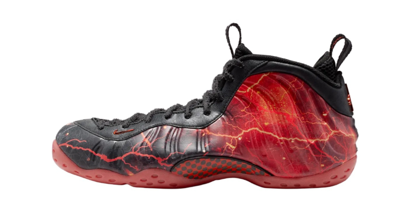 Nike 這次拿出 Air Foamposite One 堪稱「殺手鐧」,充滿未來感的鞋型與大面積的空白處,足以完美呈現《怪奇物語》中的「顛倒世界 The Upside Down」。可以看見鞋側通過火紅與暗紅色延伸至鞋底,充滿侵略性的閃電遍布於全鞋,而最頗有寓意的設計,莫過於將 Penny Hardaway 的「1-Cent」進行反轉,對應該影集在鏡像維度的視覺演繹。值得一提的是,鞋墊更被賦予主要反派 Vecna 的圖案,彷彿穿著者也能擁有精神力和心靈操控的強大能耐。
