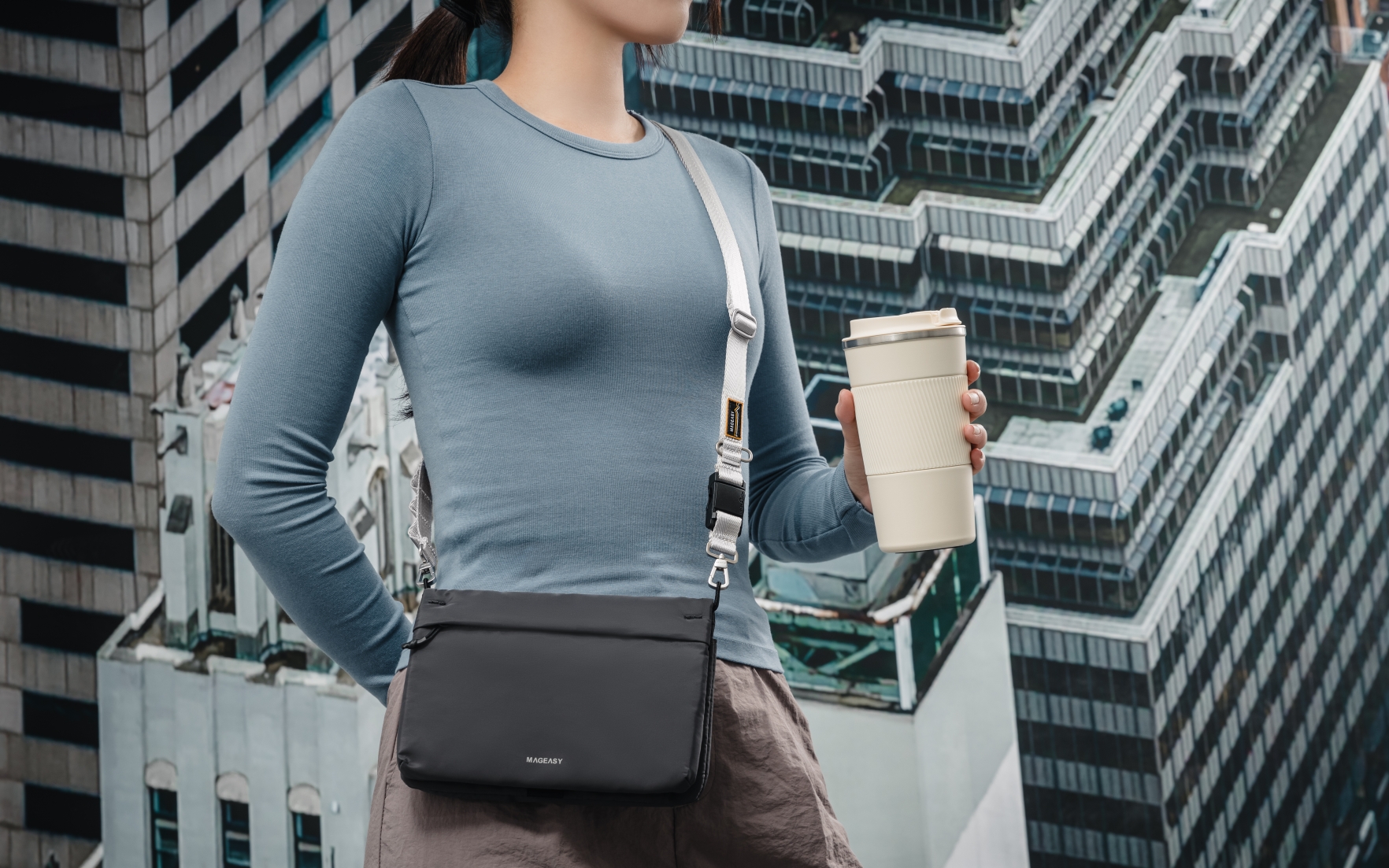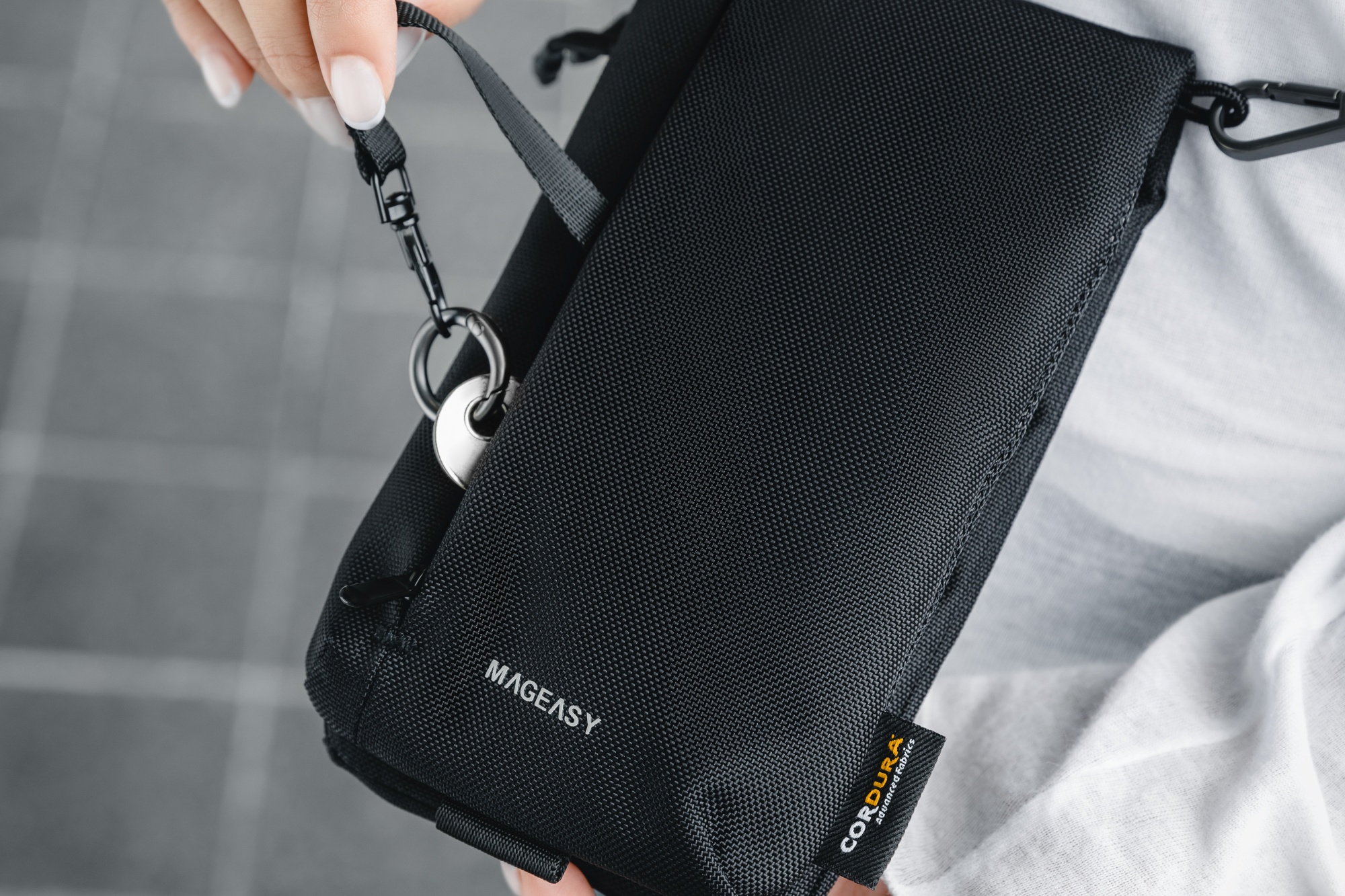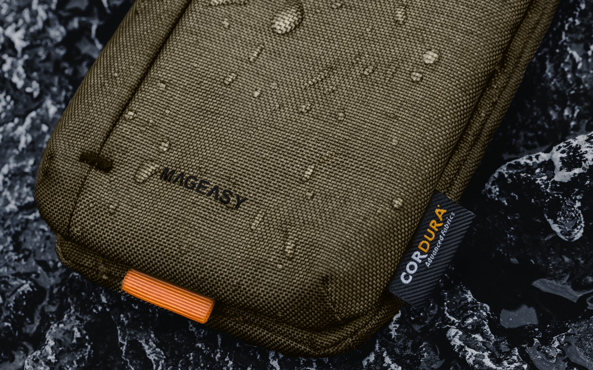 MAGEASY 在這款掛繩包背面做了手機快取收納袋,加上上蓋防滑設計,讓你在觀光熱點人擠人完全不怕手機意外滑落!再來,酷編必須說,包包的材質完全能展現 MAGEASY 的硬實力,除了具備卓越的防潑水能力,CORDURA® 款更擁有高耐磨與抗撕裂特性、XPAC 款具備防水與抗撕裂性能,就算是高強度戶外場景的旅遊行程也能輕鬆拿捏!