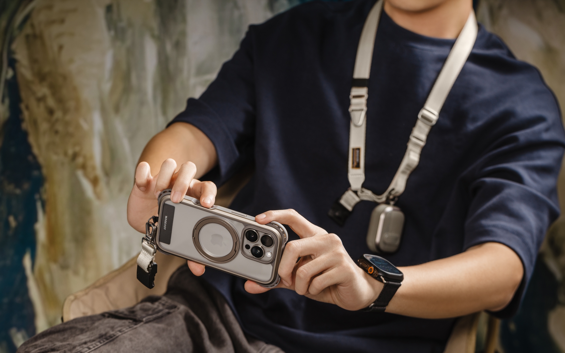 外框使用與 Apple 原廠同級的航太鋁合金邊框,搭配頂級工藝把金屬質感與細節呈現得無懈可擊又美觀,結構上則結合強化 PC 外殼與 TPU 抗震邊角,兼顧輕盈、耐刮與抗摔,為日常摔落或碰撞提供絕佳保護!除了支援無線充電,再加上可拆式掛耳、掛孔設計,能依需求搭配附贈的金屬扣環或 15mm 手繩,隨時能根據你的旅途情境選擇~