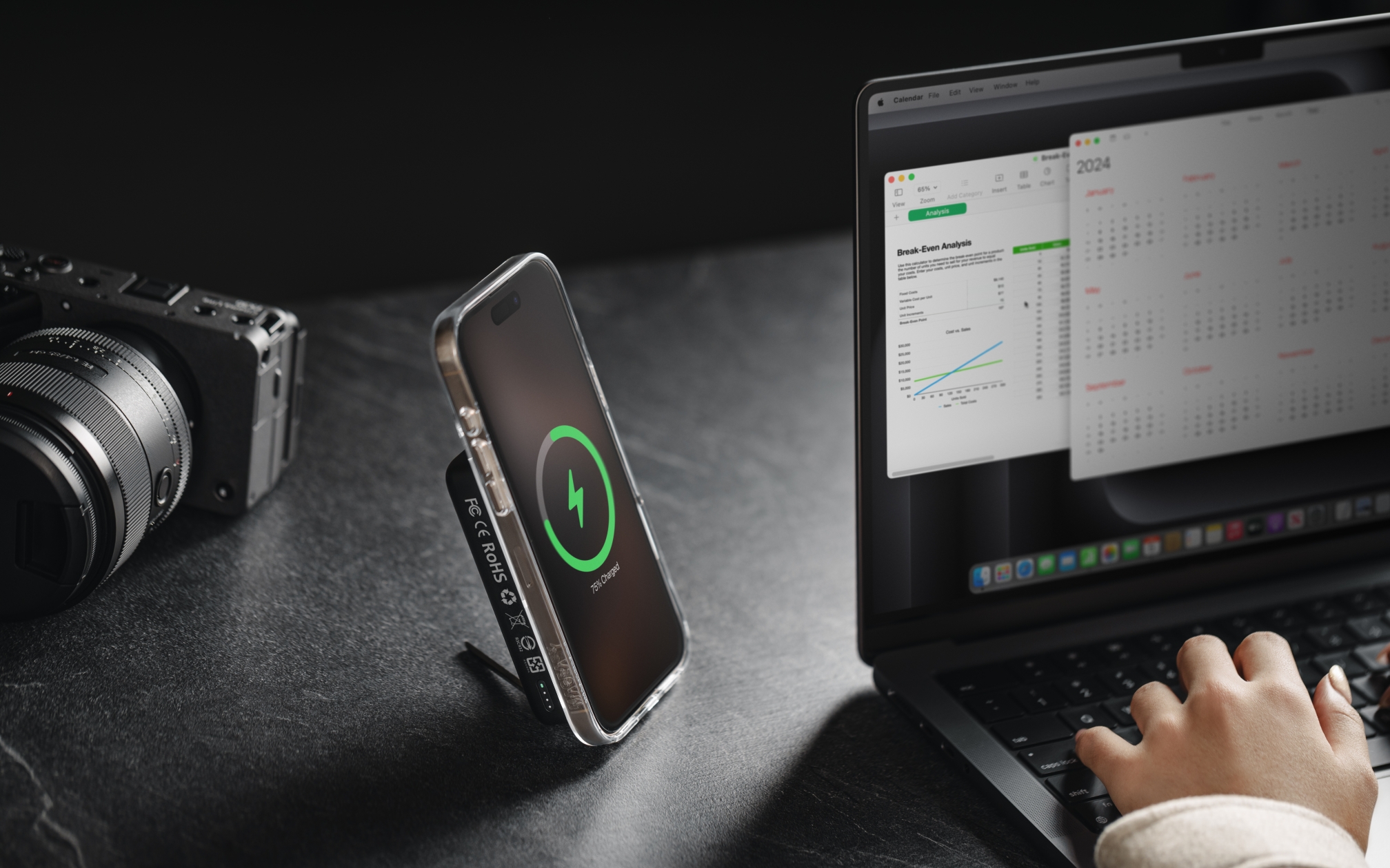 行動電源還有另一款可以選擇,把高速充電與方便好用一次整合到位!除了升級 Qi2 無線快充技術,最高可提供 15W 無線快充輸出,如果需要更猛火力時,接上充電線還能做到最高 30W 輸出,外出工作臨時替 iPad、筆電應急也是穩妥地不用緊張~背後內建支架,不管直立滑手機,甚至邊充邊追劇,都能有穩定支撐的機能來應援各種情境,從容又便利!