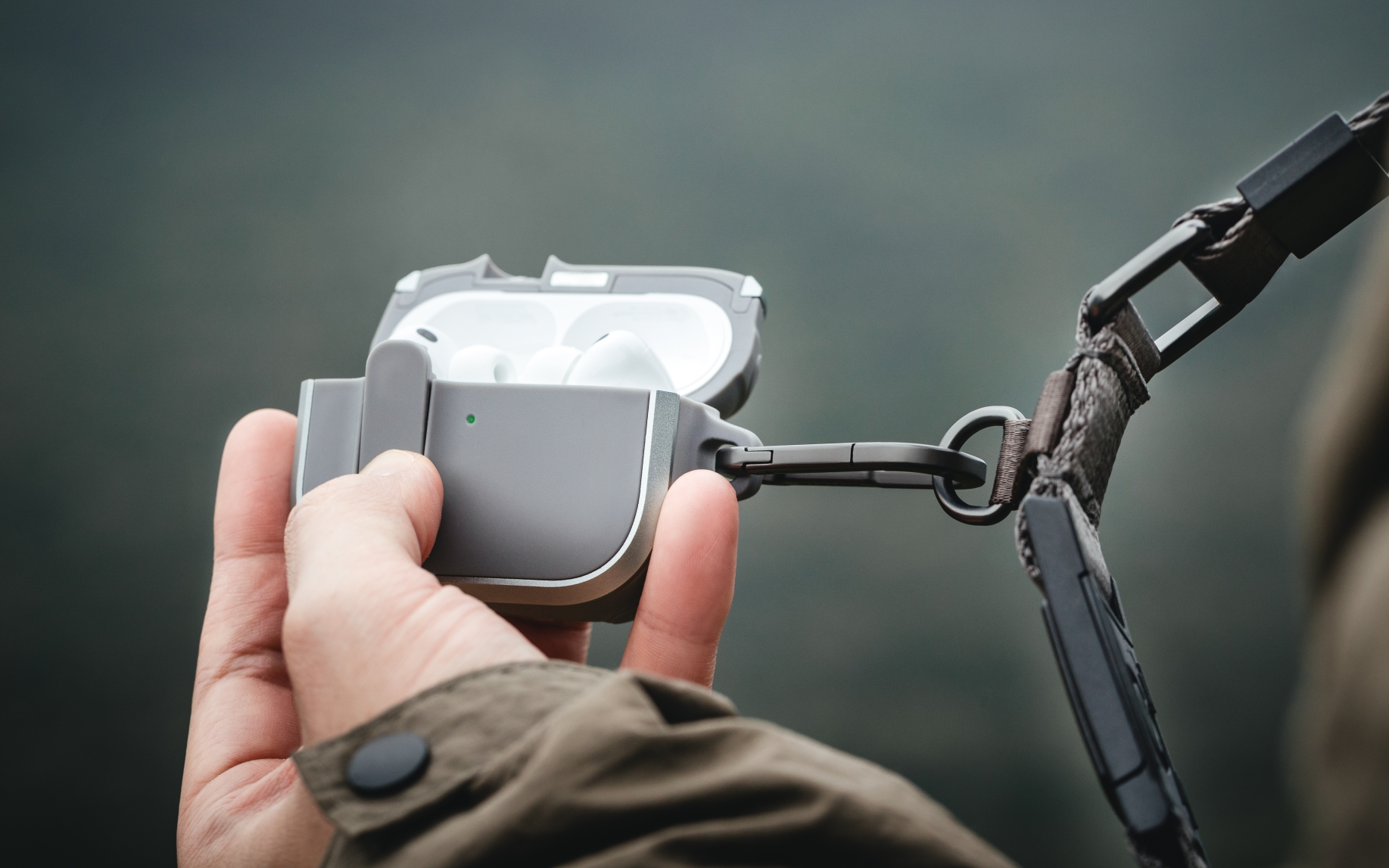 內在防護也是採用 2mm 加厚彈性 TPU,提供日常的防摔保護!另外,很多耳機殼最怕上蓋鬆脫,但它做了獨特安全倒扣設計,不需要貼膠也能有效防止上蓋脫落!在充電方面同樣友善,支援有線與無線充電,不必為了換殼改變充電習慣真的超加分哇!還超佛心隨附可拆卸耐用登山扣,想掛包外、掛腰帶或搭配掛繩隨行都很方便!