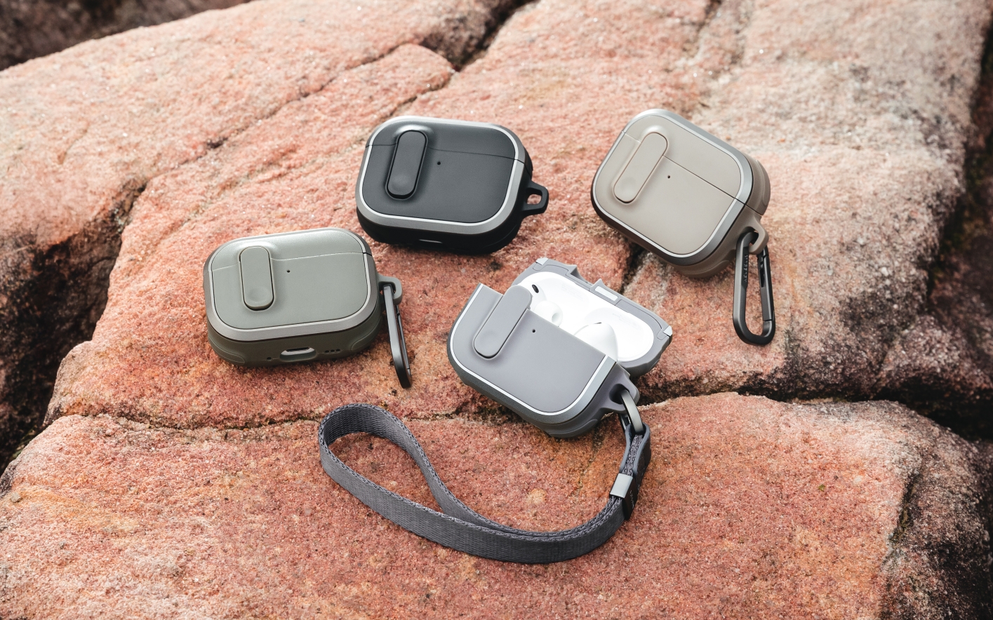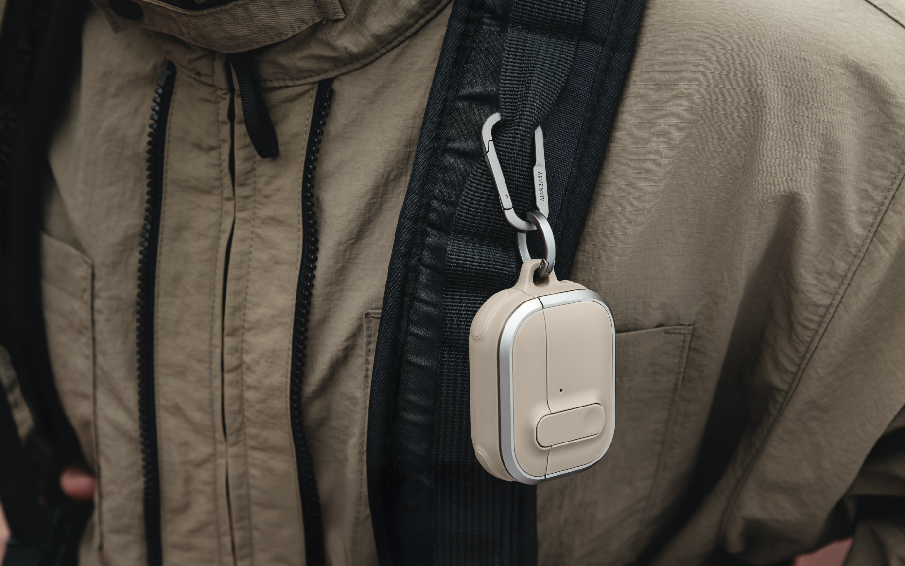 如果比較多戶外活動的行程,最推薦這款耳機殼!獨家保險扣鎖設計,只有在按壓扣鎖下方時才能開蓋,直接降低 AirPods 日常碰撞或塞包裡不小心彈開、耳機噴出去的風險,安心感滿滿!互斥磁石技術,按壓後會自動彈開,整個動作更流暢,單手操作也不拖泥帶水。並且貼心隨附 3M 貼條,強化上蓋貼合,且標榜不用擔心殘膠問題,整體使用更加分!