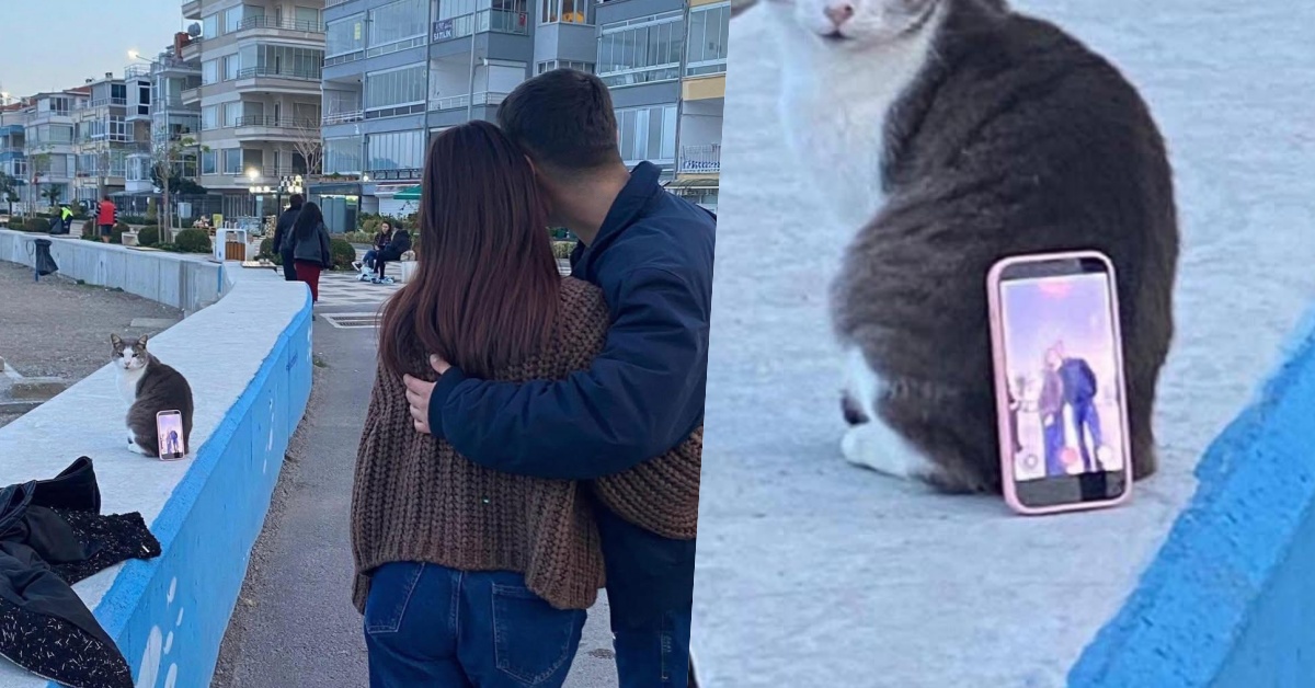 事情發生在土耳其海邊,一對情侶想自拍卻苦無支撐物,最後竟把手機靠在一隻坐在堤防上的虎斑貓身上。更荒謬的是,這隻貓不但沒有逃跑,還穩穩坐好、全程不動,彷彿早就習慣擔任「攝影器材」。照片被網友分享在「美版PTT」Reddit 上立刻引發討論。