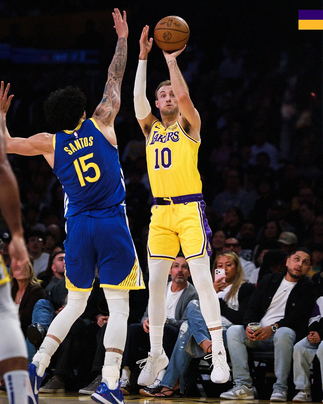 八村壘得到18分,投籃命中率高達70%。Austin Reaves16分5籃板8助攻。新同學Luke Kennard 湖人首秀貢獻 10 分。後衛 Marcus Smart得到 15 分 4 助攻。勇士隊表現以穆迪 Moses Moody 20 分全隊最高。