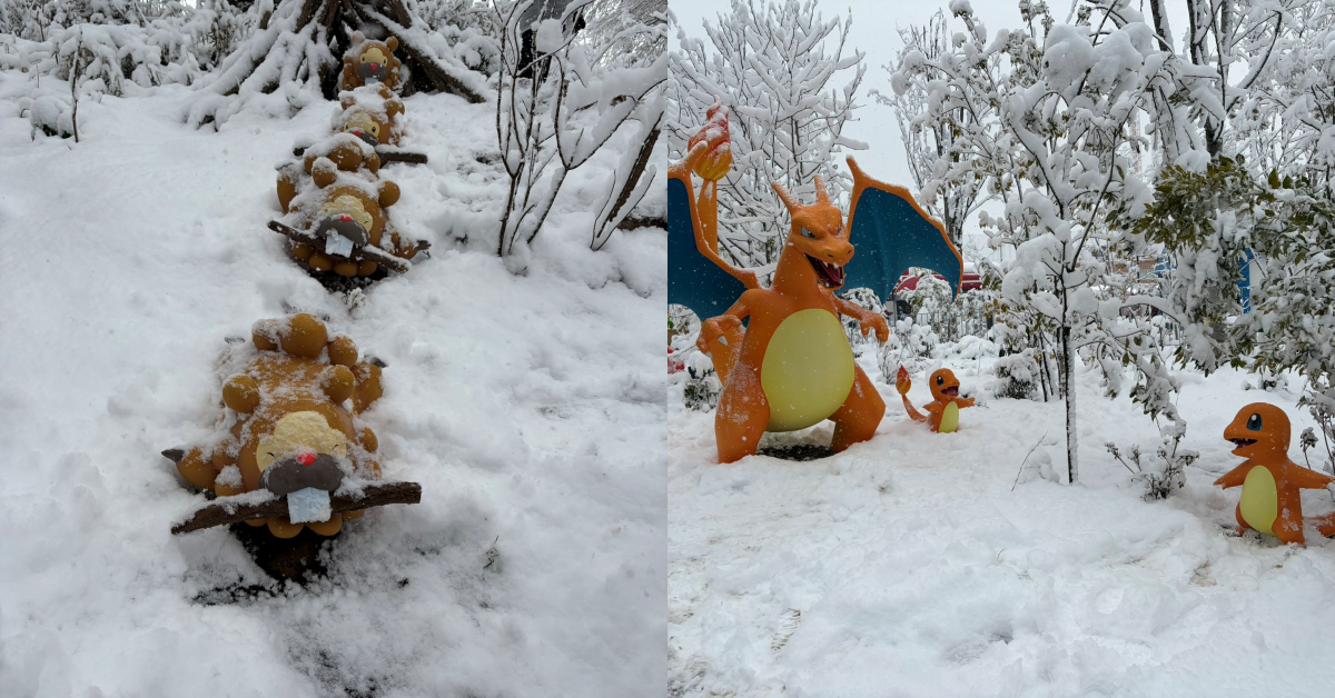 而這場大雪也讓整個樂園都被大雪覆蓋,形成白皚皚的景象,日本網友推主 0plmko0 也拍下了這些令人震驚的畫面與粉絲們分享,種類繁多的寶可夢彷彿都在雪中玩耍一樣,真的相當可愛。