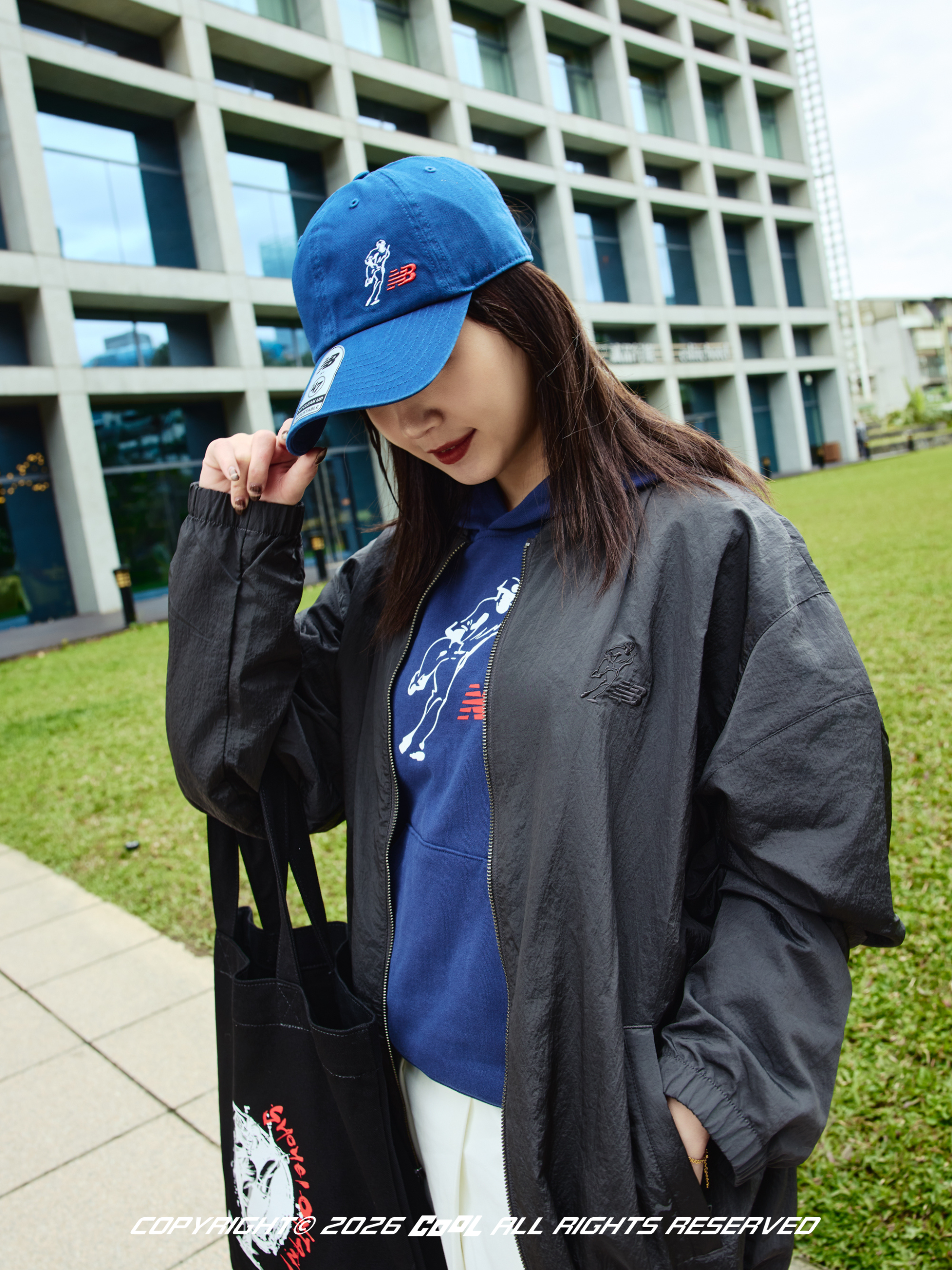 與之呼應的梓寧則展現了女孩的運動甜美感,她選擇經典NB 大谷系列帽 T 混搭此次聯名款運動外套,下身選擇白色百褶裙。棒球元素與輕盈裙裝的碰撞,面料特有的延展性與呼吸感,在率性與動感間取得視覺平衡,讓她在高昂的球場氛圍中,依然保有不經意的優雅氣質。手提聯名提袋的輕便配置,讓熱血應援或是日常通勤的每一個肢體動作都顯得從容自然,在熱鬧的球場周圍中,演繹出最具質感的活潑風格!