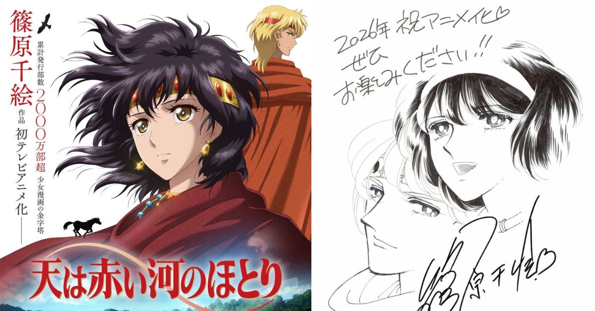 而對於這次《赤河戀影》的文藝復興動畫化,作者篠原千繪也特別公開了自己繪製的慶祝賀圖,並寫下:「沒想到《赤河戀影》漫畫連載完 24 年了還有人記得這部作品,希望這個全新的 2026 年動畫化消息,可以讓當時追連載的老粉們重新喚醒當年的回憶之外,對新來的粉絲們也可以是一個全新體驗作品的方式!」