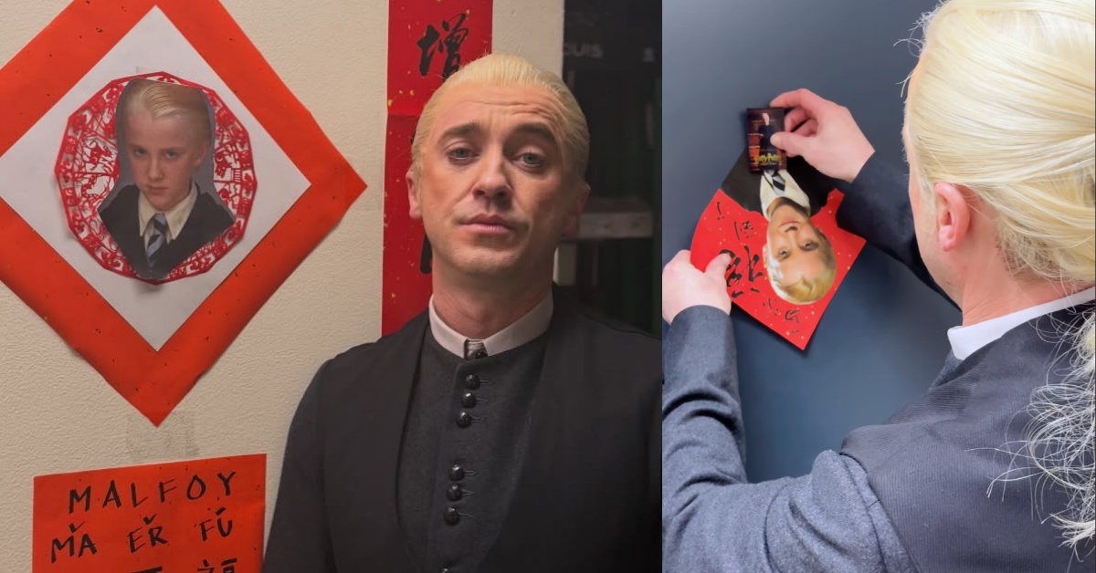 自己的諧音梗自己玩!因演出《哈利波特 Harry Potter》系列中跩氣滿滿的「跩哥馬份 Draco Malfoy」而紅遍全球的英國男星湯姆費爾頓 Tom Felton,最近意外變身「中國馬年代表人物」,被網友印成春聯張貼在家門口,而湯姆費爾頓本尊也沒缺席,用中文向影迷祝賀新年快樂。