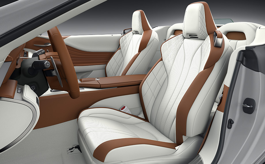 內外觀細節則展現頂級日式職人工藝, LC 500 採用專屬「朧銀灰」車色,呈現如手工鍛造般的深邃層次; Convertible 車型則以「銀曜灰」車身搭配紋理棕軟頂。座艙部分導入全新的「融雪白」內裝色,於中控台與飾板融入細膩的漸層刺繡,結合專屬銘牌與迎賓踏板,營造出充滿儀式感的尊榮氛圍,展現出高度的收藏價值。